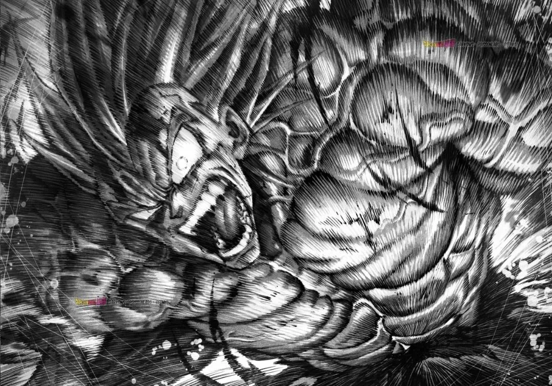 "Dragon Ball Kakumei" empezó a publicarse en 2021 y arrasó desde el primer día. Su estilo rompe con todo lo que asociamos a Dragon Ball: cuerpos hiperdefinidos, golpes brutales y un tono más crudo que recuerda muchísimo a Murata. No es que copie su estilo, pero sí captura esa sensación de potencia y velocidad que caracteriza al dibujante de “One Punch Man”. Así lo podéis ver en las siguientes imágenes: