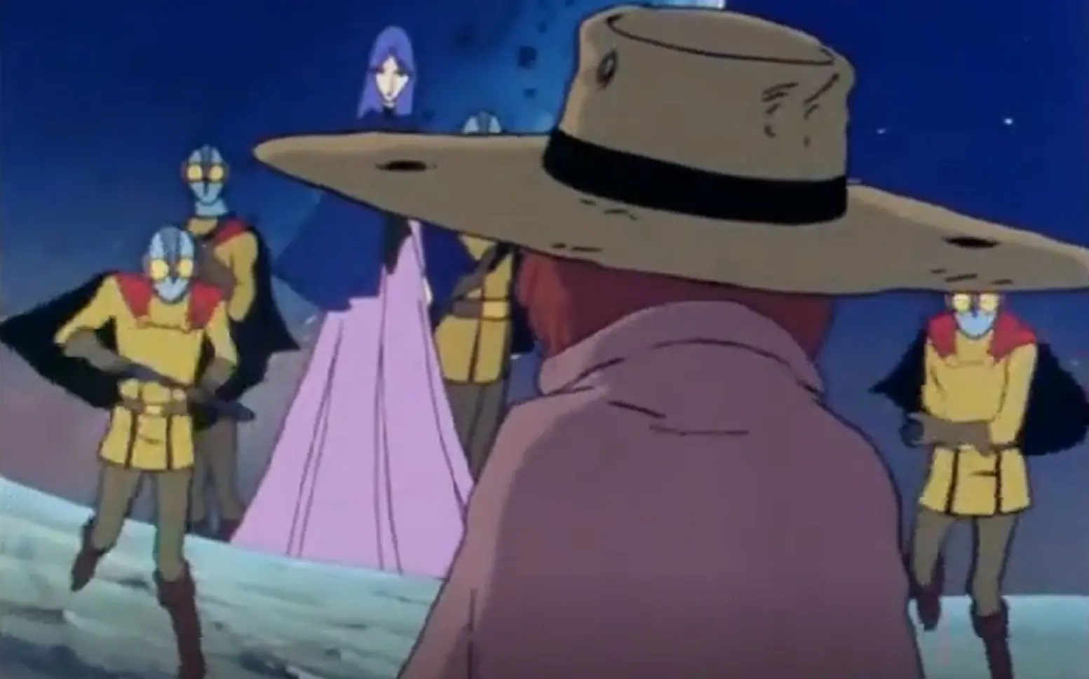 Obviamente, imagen en HD no se va a encontrar ya que "Galaxy Express 999" forma parte de un pasado muy lejano de la industria del anime. Pero creo que esta imagen a cuerpo completo sirve para distinguir la capa, 'rostro' e incluso paleta de colores que comparten con los Gammas. Para tenerlos de referencia, os dejo una imagen suya seguidamente: