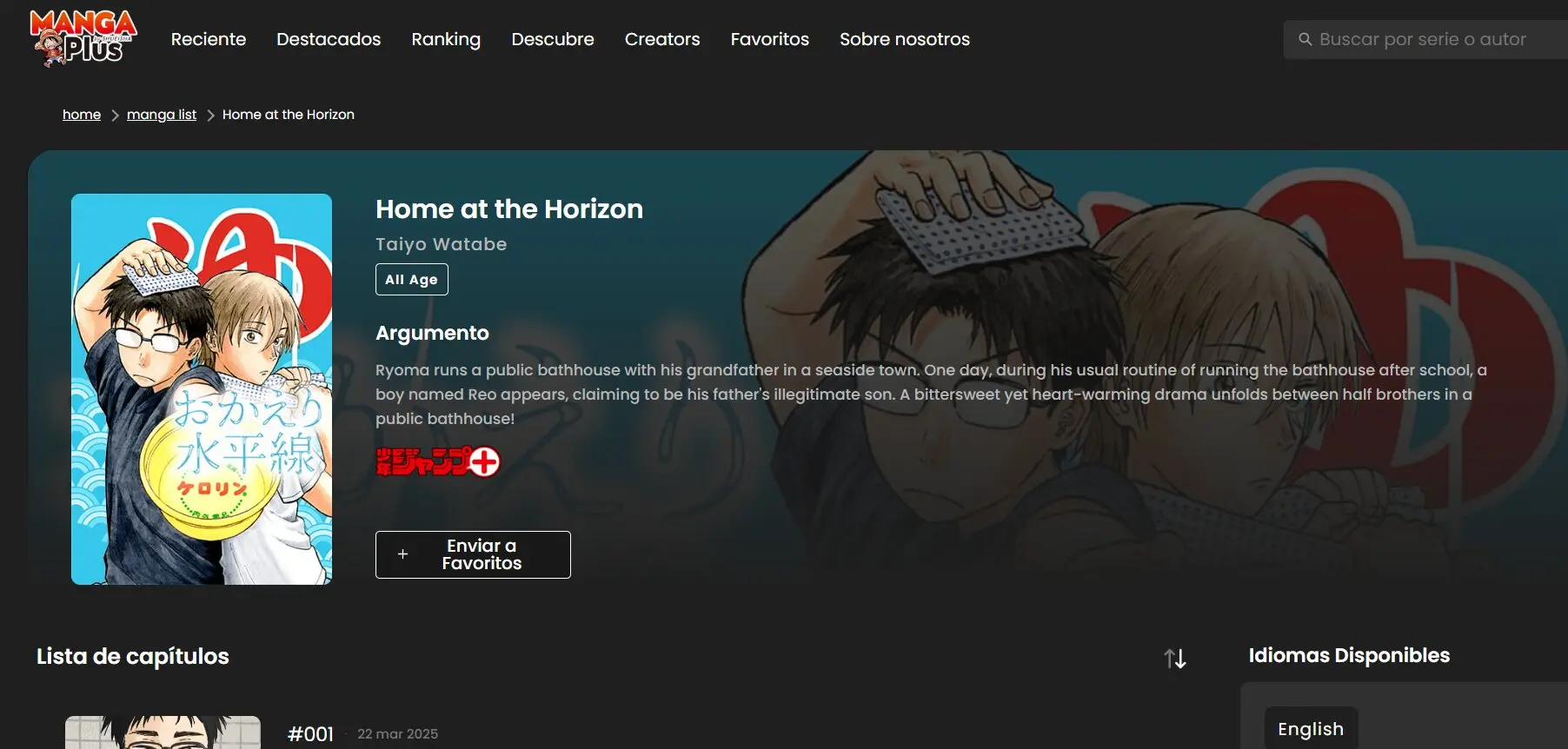 A pesar de que no se trata ni mucho menos de los mangas más populares de la plataforma, "Home at the Horizon" se encuentra disponible de forma completamente gratuita a través del servicio de Manga Plus. Dentro de lo bueno de ello, la parte mala es que el manga no cuenta por ahora con una traducción al español, derivado ello seguramente del hecho de que el manga no ha contado con explosión mediática alguna.