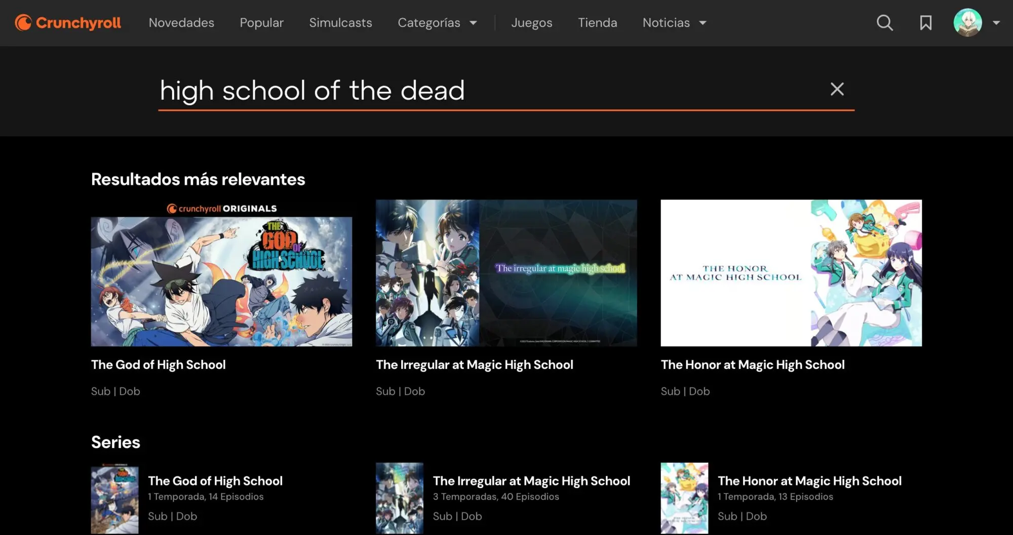 Este anime no es una de las muchas licencias que tiene la plataforma, lo que se traduce en que 'High School of the Dead' no está disponible en Crunchyroll. Dado que estamos hablando de una serie clásica que no va a estrenar nuevos episodios, considero que es imposible que termine recalando en este servicio en el futuro.