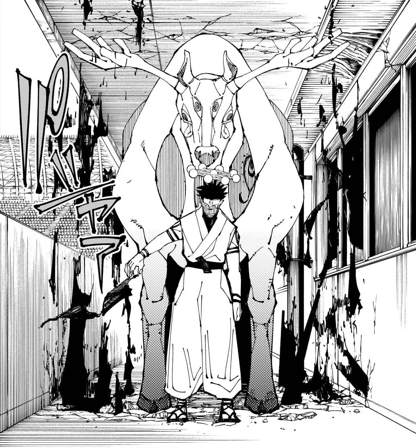 Este es otro de los shikigamis invocados por Sukuna durante su combate contra Satoru Gojo. Este buey se especializa en cargar contra sus rivales con una gran fuerza. Solamente puede moverse en línea recta, pero cuanto más larga sea la carga, más potente será la acometida. Esta potencia de ataque llega a rivalizar incluso con la habilidad de un hechicero reencarnado de la Era Heian.