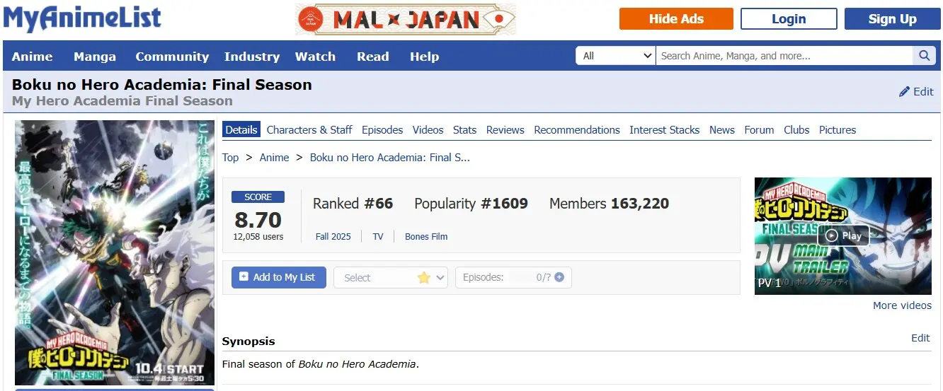 Lo primero que hay que destacar de la temporada final de "My Hero Academia" es que, por ahora, las valoraciones que ha recibido en distintas plataformas de Internet son excepcionales. Repaso algunas de las más llamativas: