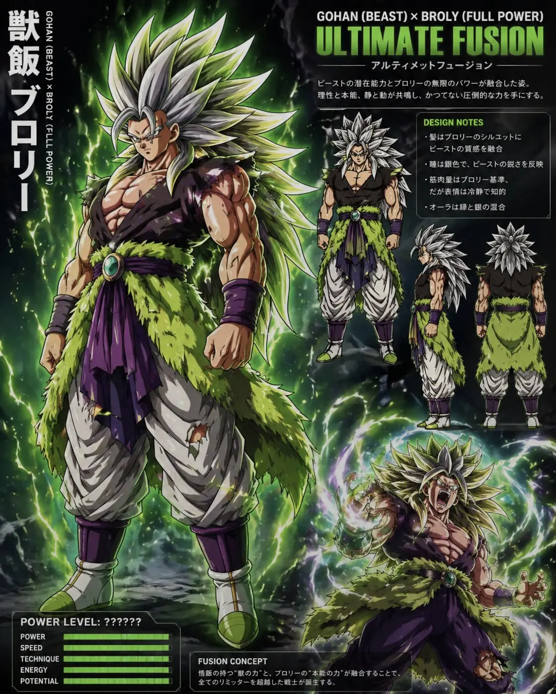 Es decir, la fusión de ambas partes sería algo así como darle a cada uno lo que le falta: a Gohan el poder de los Saiyans que ha dejado de lado y a Broly lo más parecido a una forma divina de las que tan lejos se encuentra hoy en día. Y si a eso le sumamos lo superlativo del poder de ambos, el resultado es directamente atronador.