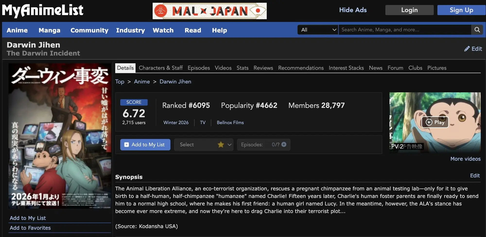 El incidente Darwin MyAnimeList