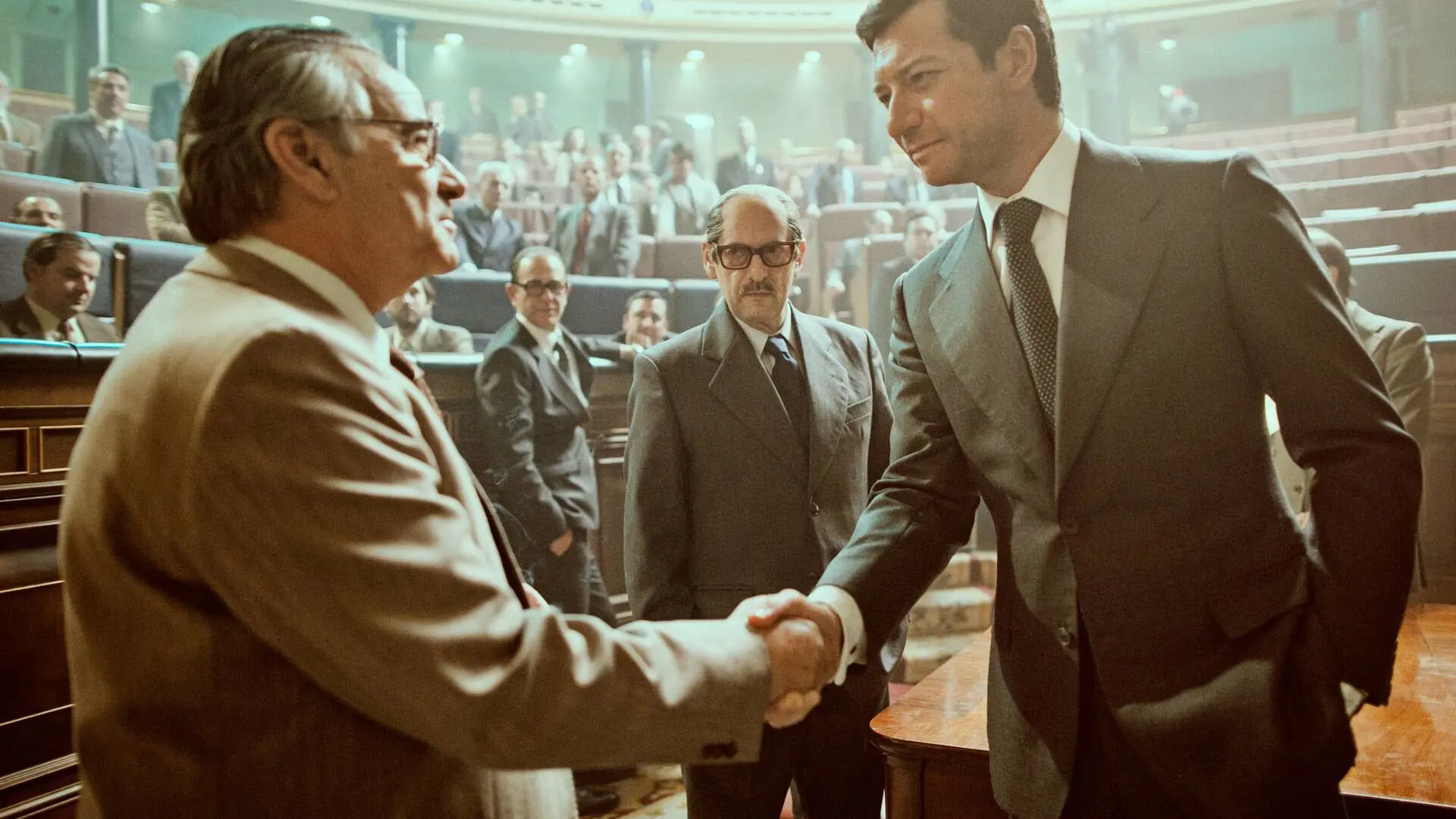 Los cuatro episodios de 50 minutos cada uno se organizan como una miniserie que profundiza en tres figuras clave del instante congelado ante las cámaras: Adolfo Suárez, Santiago Carrillo y Gutiérrez Mellado, los únicos que permanecieron sentados mientras las balas silbaban sobre el hemiciclo.
