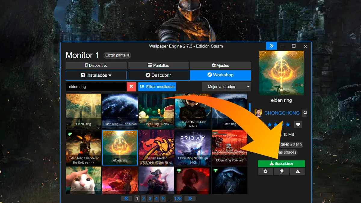 Para poder aplicar cualquier fondo que se te ocurra en tu escritorio, lo único que tienes que hacer es abrir Wallpaper Engine, darle a la pestaña de descubrir y escoger cualquier tema creado por la comunidad (o uno que hayas encontrado tú con su opción de búsqueda). Una vez hayas elegido, pulsa sobre el fondo en cuestión y dale al botón que dice ¨suscribirse¨.