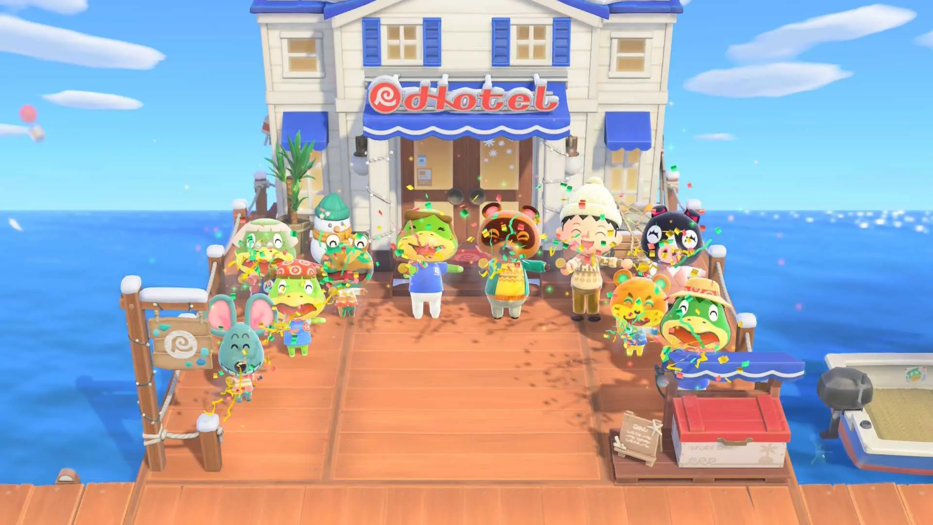 Un extra bastante curioso del Hotel es que los visitantes que le alojan en él podrán aparecer dando una vuelta por nuestro pueblo. Como van cambiando con frecuencia, es de agradecer toparnos con caras nuevas cada vez que damos un paseo. Dicho Hotel recuerda un poco al DLC 'Happy Home Paradise', aunque más sencillo.