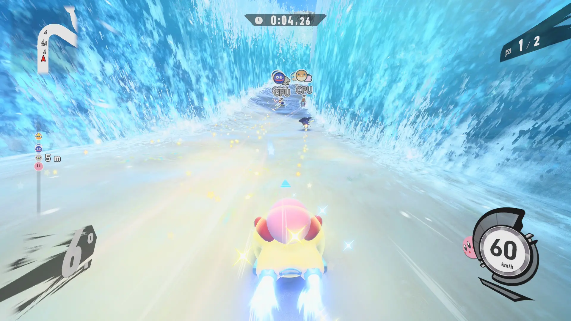 Es este último concepto el que hace que todas las piezas empiecen a encajar: las partidas de Kirby Air Riders no suelen durar más de minuto y medio por razones evidentes, y a menudo te confrontará con una cadena interminable de estímulos, dopamina y breves intervalos de caos que atrapan con fuerza.