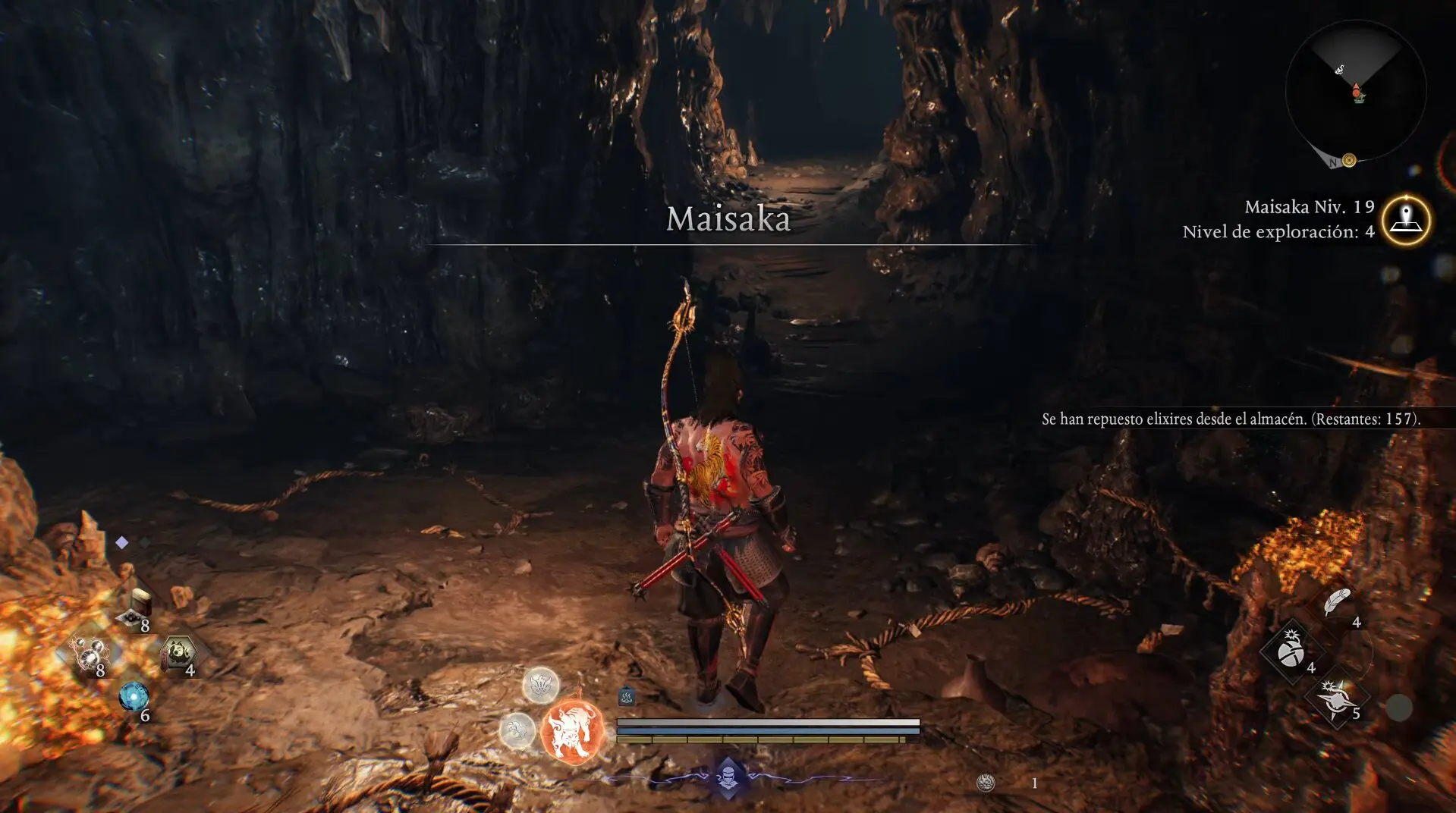 Hay algo que el mundo abierto de Nioh 3 hace muy bien: recompensarte constantemente. Y lo hace sin que debas estresarte por si no estás explorando debidamente, pues el propio juego te acompaña en el componente de explorar mediante una barra de progresión genuinamente útil. Me explico.