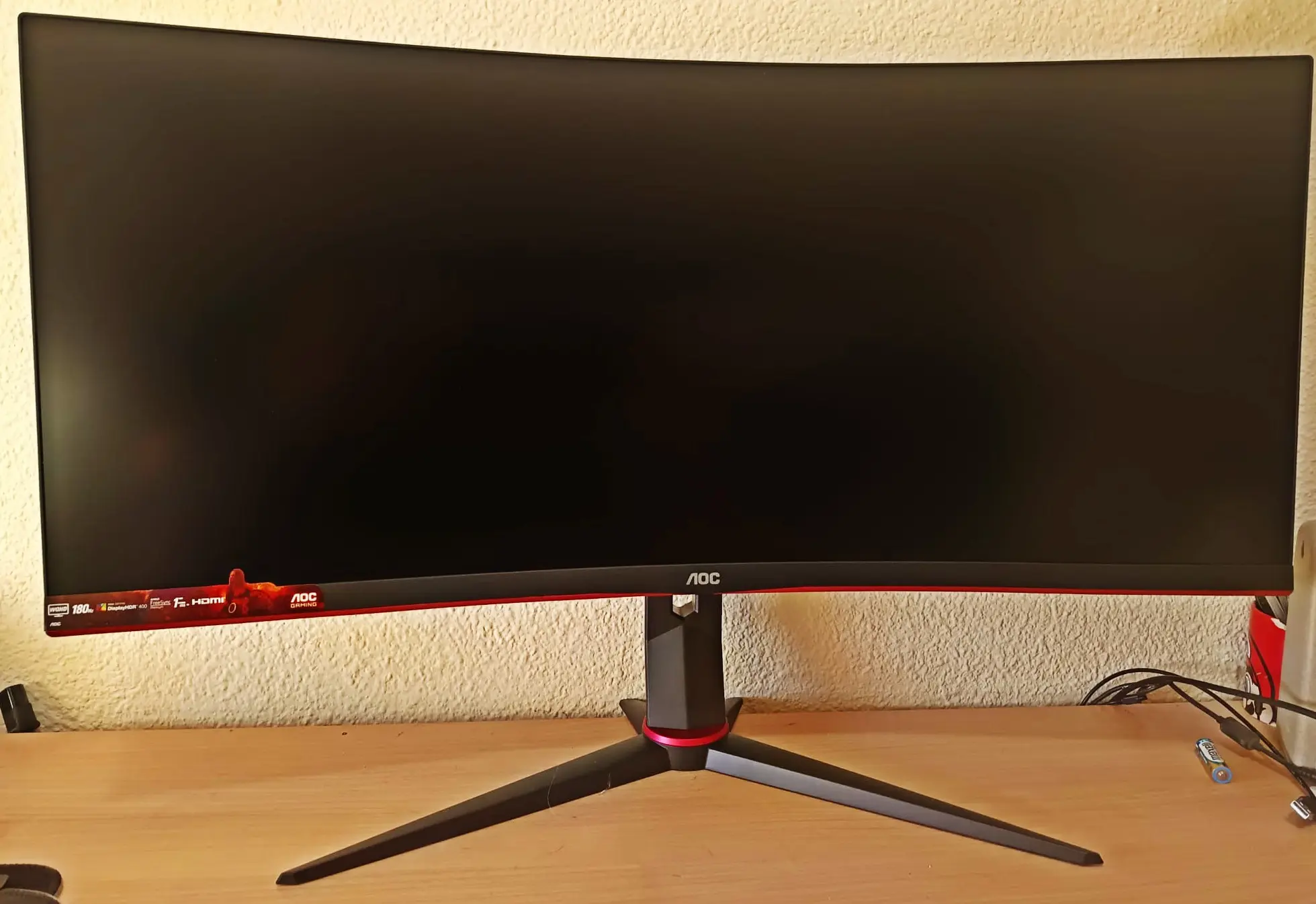 Este monitor tiene una curvatura de 1500R. Para los que no estéis familiarizados con esto, el número indica el radio en milímetros de un círculo completo formado por monitores con esa curva. Los Samsung Odyssey más bestias tienen 1000R, que es muy pronunciado. El 1500R de este AOC está en el punto dulce para 34 pulgadas.