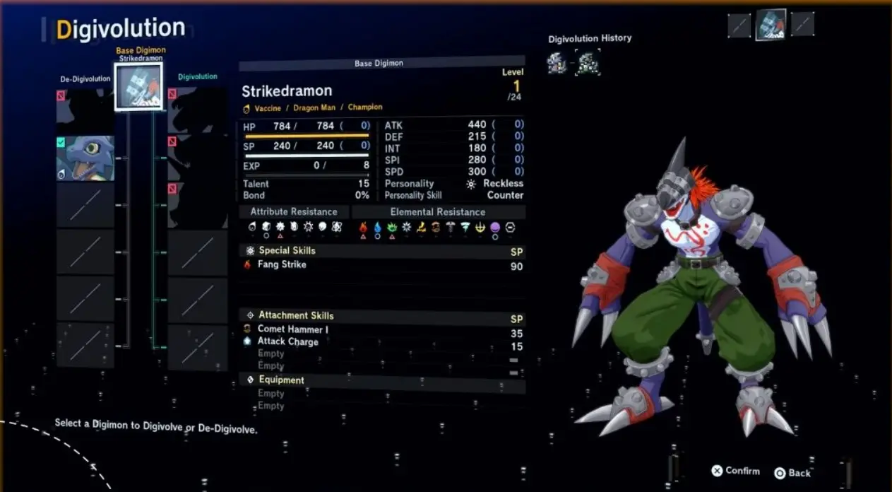 Como sabréis hay distintas fases de Digievolución, como los Digimon Campeones o los Mega, entre otras. Esto es algo que en Digimon Story Time Stranger depende en su mayoría de tu 'nivel de Agente', que básicamente aumenta a medida que haces misiones principales y secundarias. Pero lo más interesante es que un solo Digimon no tiene una posible Digievolución, y además cada posibilidad requiere atributos distintos para tu Digimon.