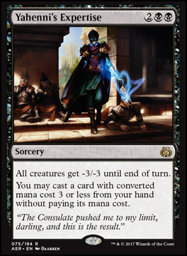 -Pericia de Kari Zev: Por apenas 3 manás nos podemos hacer con el control de la criatura o Vehículo objetivo del oponente hasta final de turno ganando la misma prisa. Aparte podemos bajar una carta de coste 2 o menos de nuestra mano sin pagar su coste de maná.