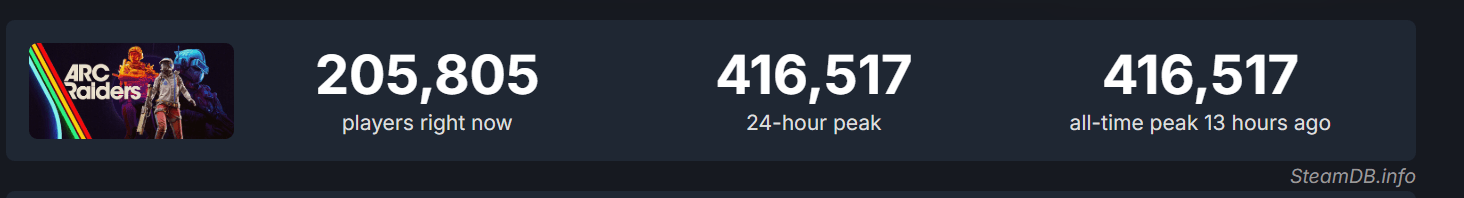 ARC Raiders no para de crecer y eso es raro. Normalmente los juegos explotan el primer día y después empiezan a caer poco a poco. Pero este lleva diez días en el mercado y acaba de romper otro récord de jugadores concurrentes en Steam: 416,517 personas jugando al mismo tiempo. Hace unos días el récord estaba en 354,000. O sea que en lugar de bajar, está subiendo todavía. Eso no pasa casi nunca.