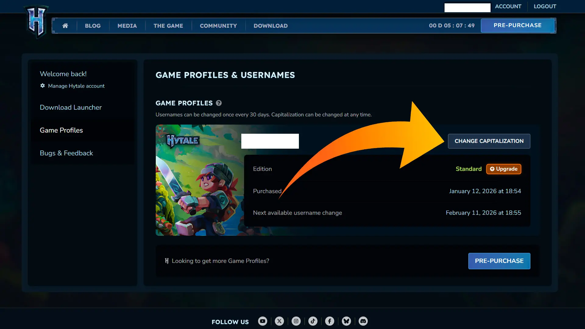 De hecho, debajo de la opción de cambiar el nombre de usuario, el menú muestra varios datos como la edición que has comprado y cuándo lo hiciste, pero lo que nos interesa aquí es la tercera línea, donde se especifica cuál es la fecha exacta en la que tendrás disponible la opción de cambiar tu nombre de usuario de nuevo.
