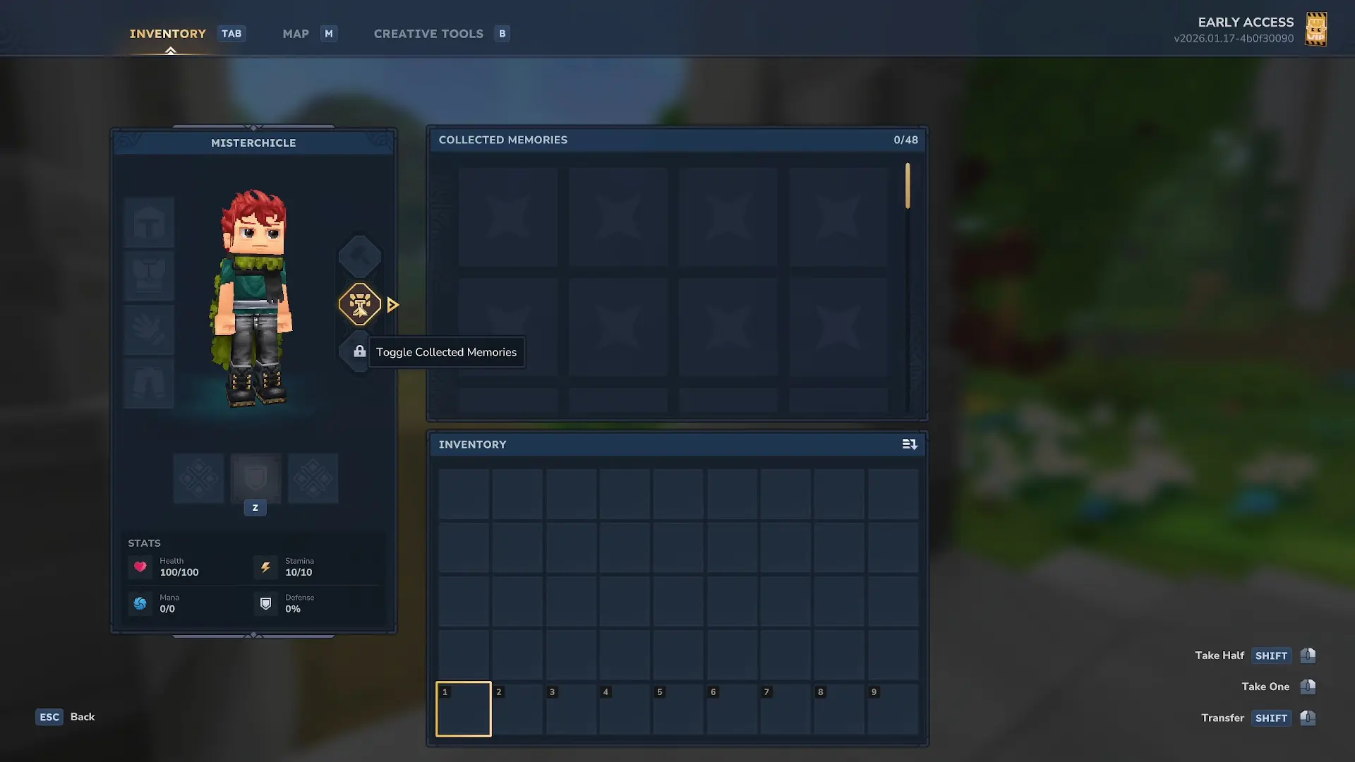 Y es que son estas últimas las que nos permitirán ampliar el límite de teleporters que podamos usar. Pero, ¿cómo se consiguen exactamente? Muy sencillo: desbloquearás una por cada enemigo, animal, material u objeto que descubras dentro del juego, haciendo que este sistema conste como una especie de registro de todo lo que puedes encontrar dentro de Hytale. Para canjear las Memorias que vayas consiguiendo, accede a su menú a través del botón que encontrarás junto a la imagen de tu personaje en el inventario.