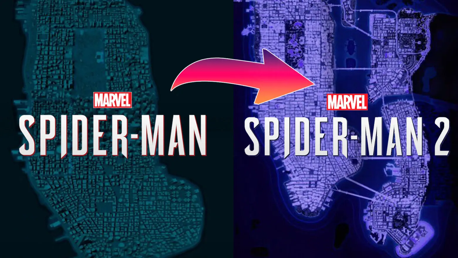 Durante el State of Play del día de ayer, Spider-Man hizo acto de presencia en el evento y sinceramente, era algo de esperar. En el nuevo tráiler que nos mostraron pudimos ver grandes cantidades de cosas nuevas que hasta ahora no sabíamos y dejándonos más enamorados aún. De los casi 4 minutos que dura este nuevo tráiler, pudimos ver al principio el mapa desde el menú del videojuego. Es por eso que contamos con una comparativa pequeñita sobre el mapa del primer y este último juego.