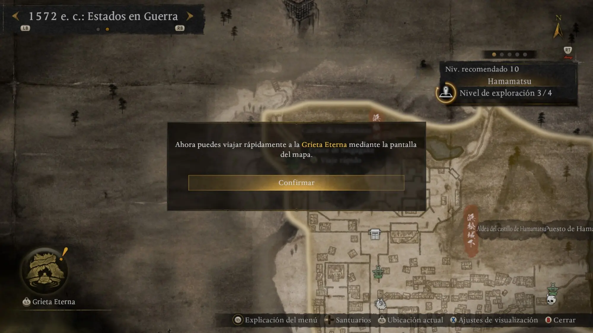 💡 Ajuste útil: La orientación de la brújula puede configurarse en MENÚ PRINCIPAL > SISTEMA > AJUSTES BÁSICOS DEL JUEGO.