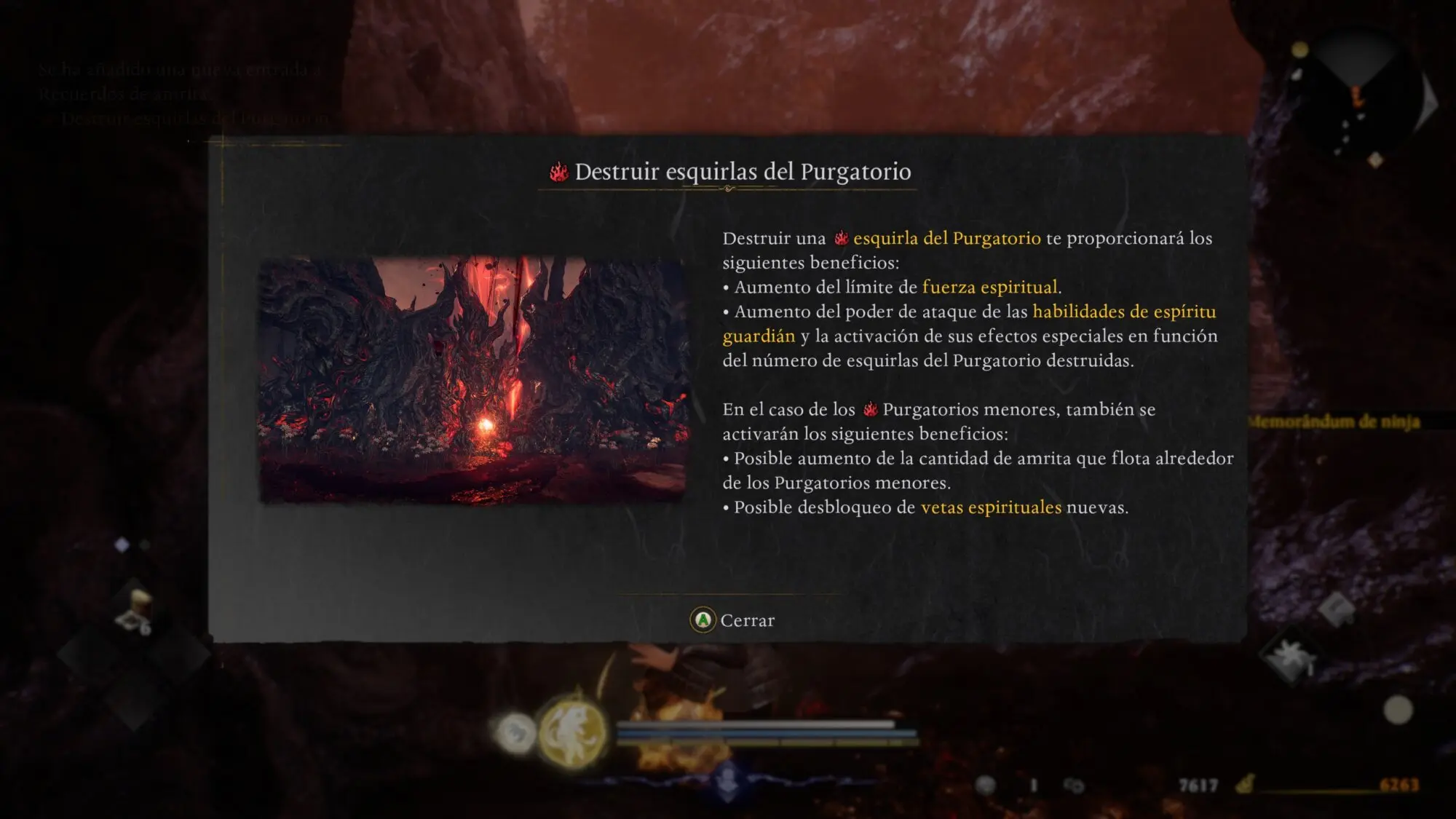 | Esquirla del Purgatorio | Derrota yokai guardianes y destruye el pincho |