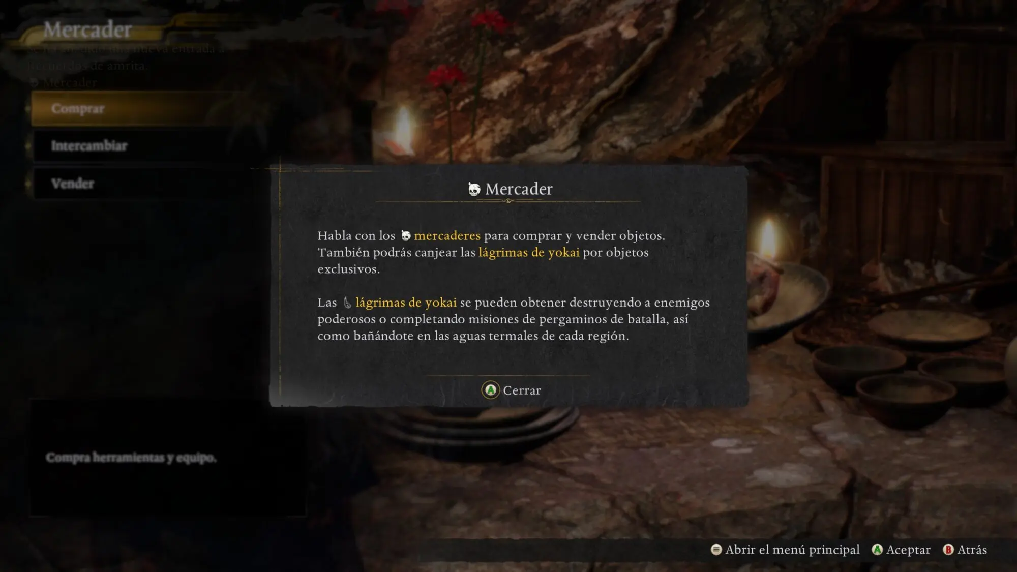 Puedes comprar varios objetos a Sudama o intercambiar lágrimas de yokai por bienes únicos.