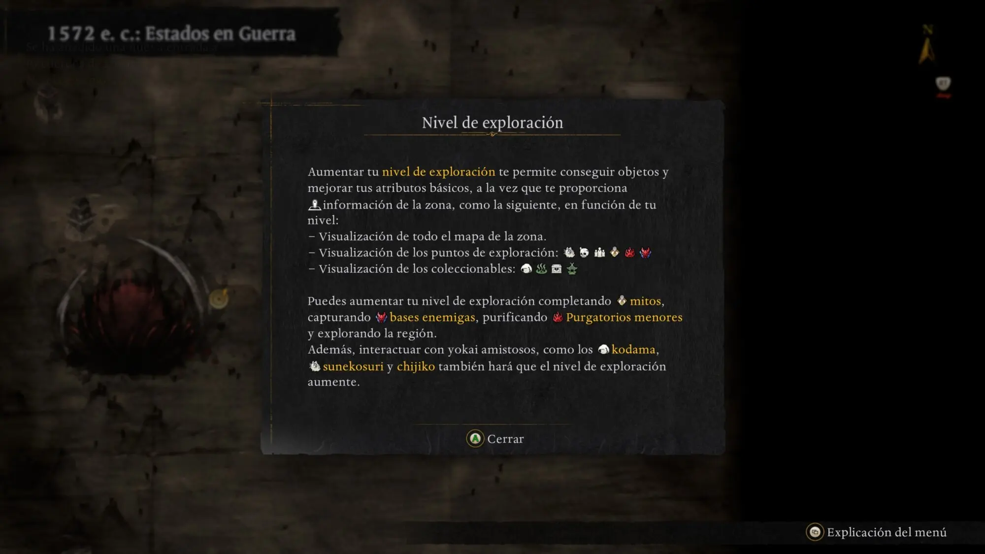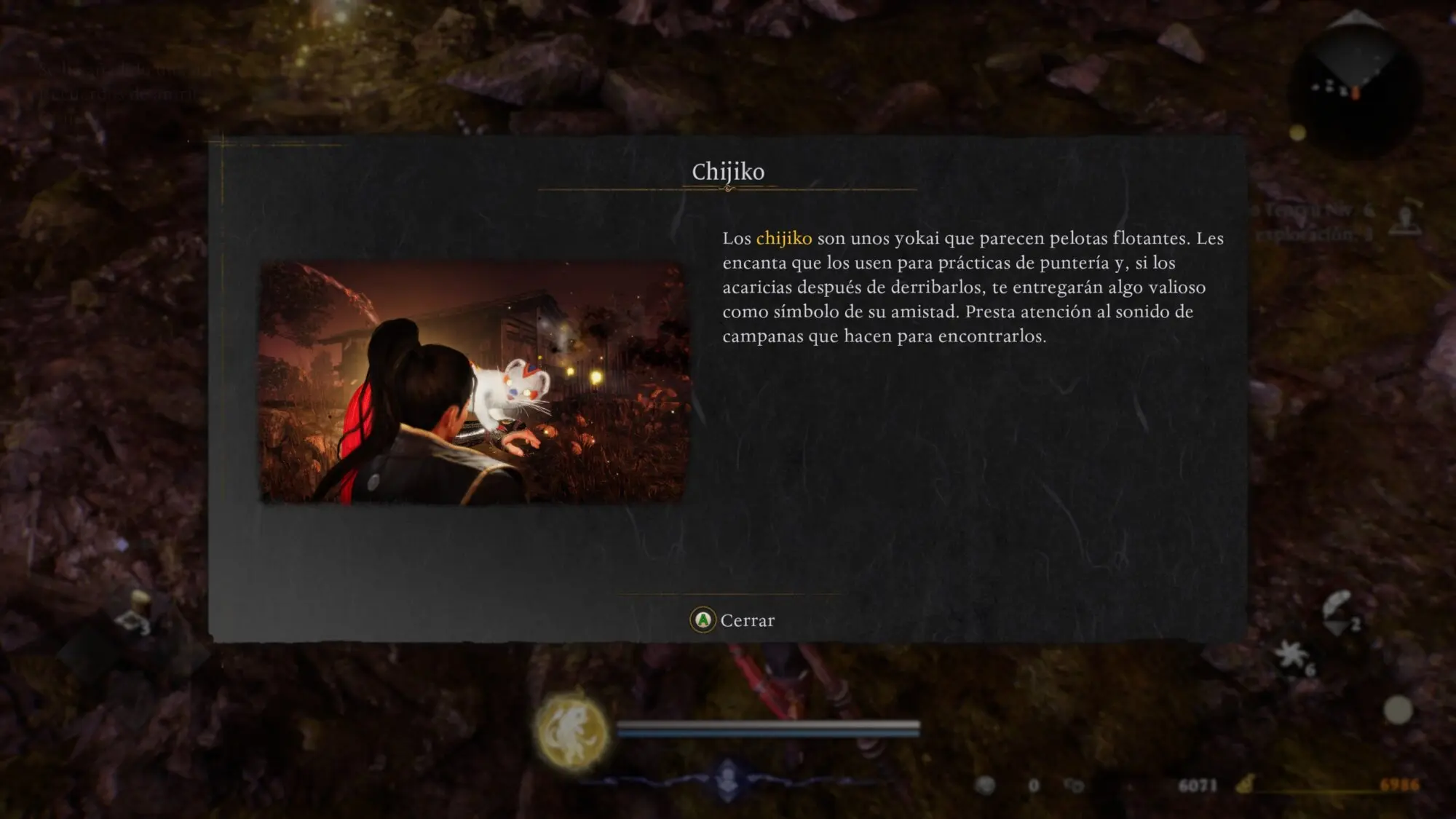 | Coleccionables | Muestra dónde están Kodama, cofres ocultos, etc. |