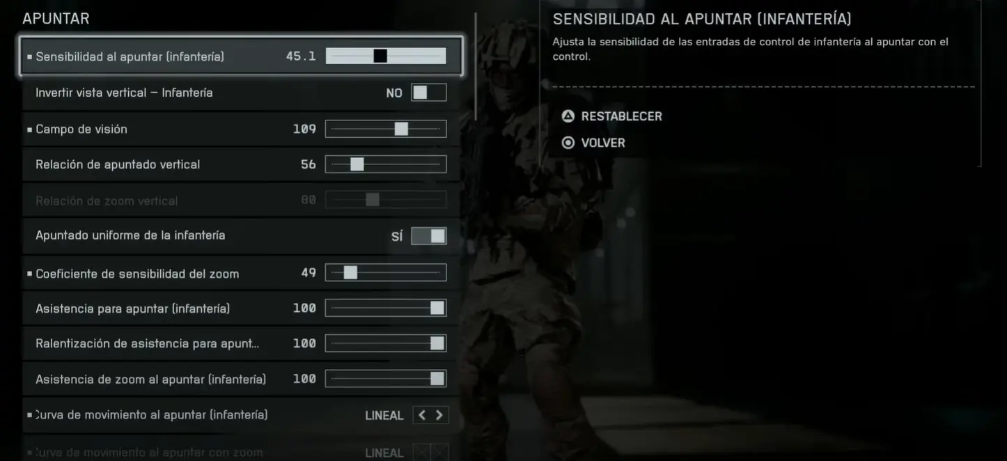 Sensibilidad al apuntar (zoom) 90% (ligeramente reducida)