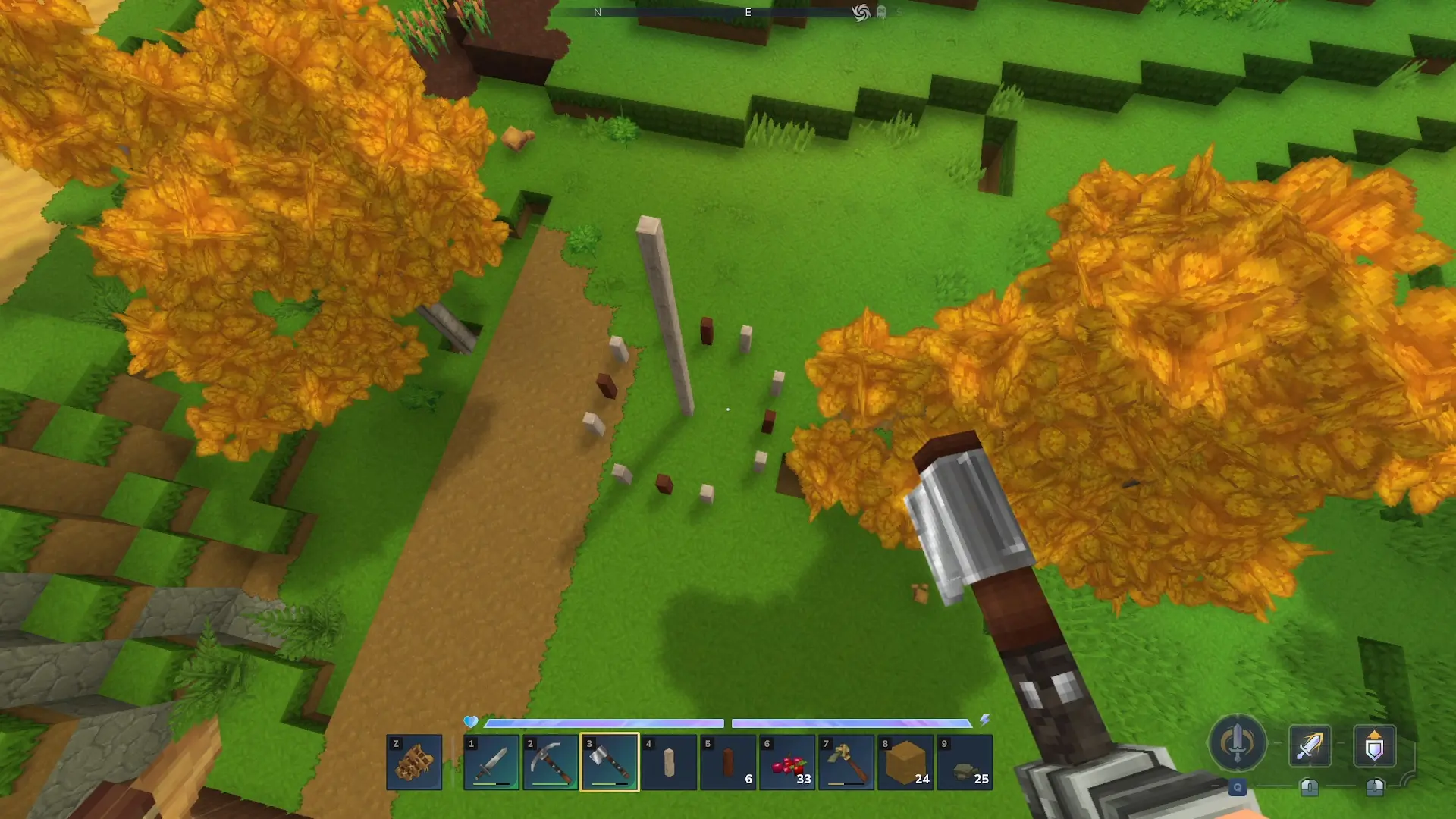 • Paso 3: busca un lugar despejado donde llevar a cabo la construcción para que le dé el sol de lleno. Ahora, coloca hasta 7 beams de forma vertical para crear un poste que sea más o menos alto