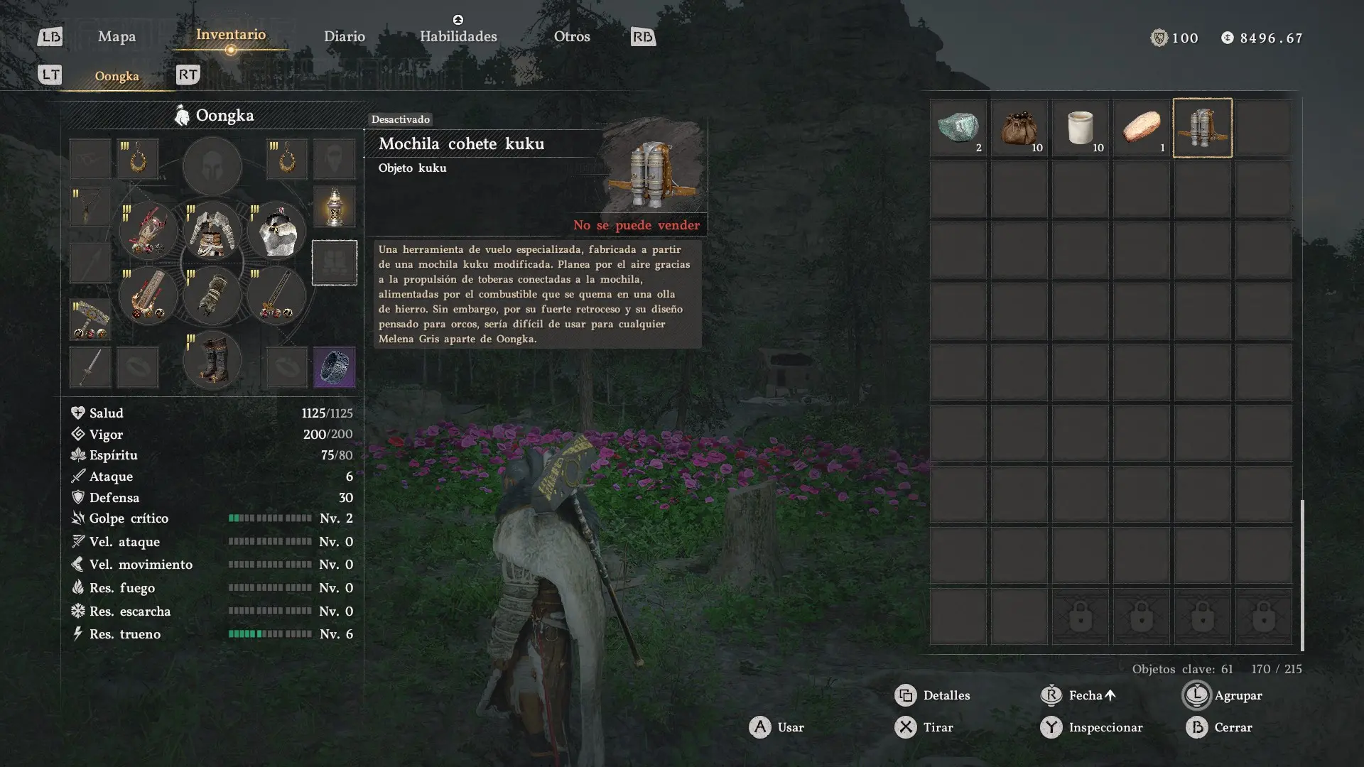 ⚠️ Importante: La Mochila Cohete Kuku es exclusiva de Oongka y no puede usarla ningún otro personaje. A diferencia del planeo de Kliff que es horizontal, el jetpack de Oongka proporciona impulso vertical activo, lo que lo hace mucho más útil para escalar terreno elevado y acceder a islas flotantes.