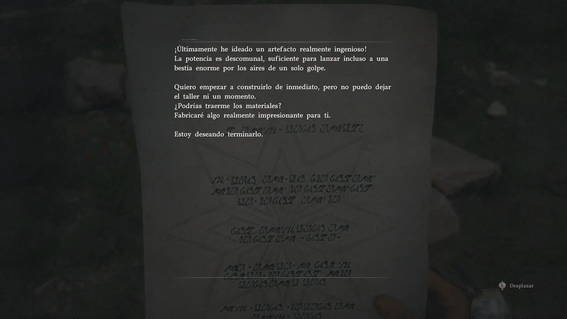 ⚠️ Importante: Al recibir la carta de Grimnir abre el inventario y selecciona Examinar sobre la carta. Simplemente recibirla no es suficiente. La receta de fabricación del jetpack solo aparece en tu pestaña de Conocimiento después de examinar el documento. Si no lo haces no desbloquearás el plano.