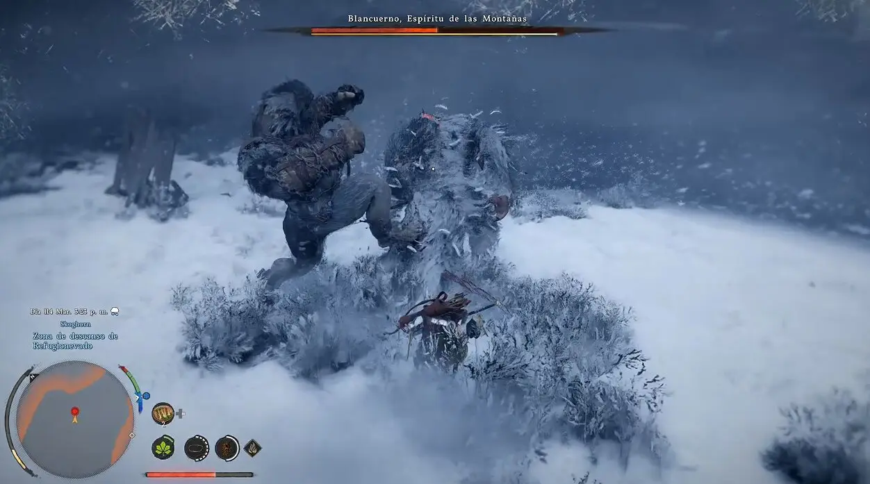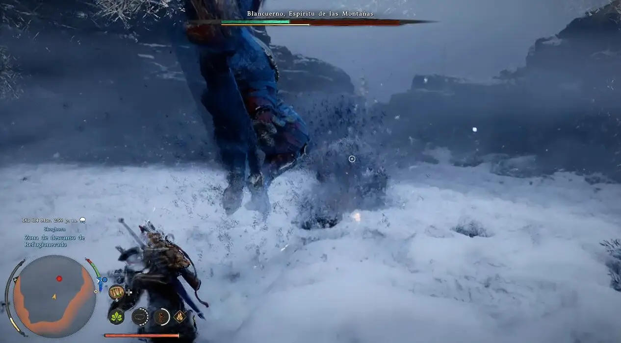 Blancuerno, Espíritu de las Montañas es sin duda el jefe opcional más exigente de Pailune y uno de los más espectaculares del juego. Esta criatura híbrida entre yeti y reno colosal aguarda en la Zona de descanso de Refugionevado, en la región de Skoghorn, y enfrentarla requiere preparación específica porque tiene tres fases completas con patrones de ataque distintos. Sin la habilidad adecuada contra ella, el combate se convierte en un suplicio. Con ella, en un espectáculo.