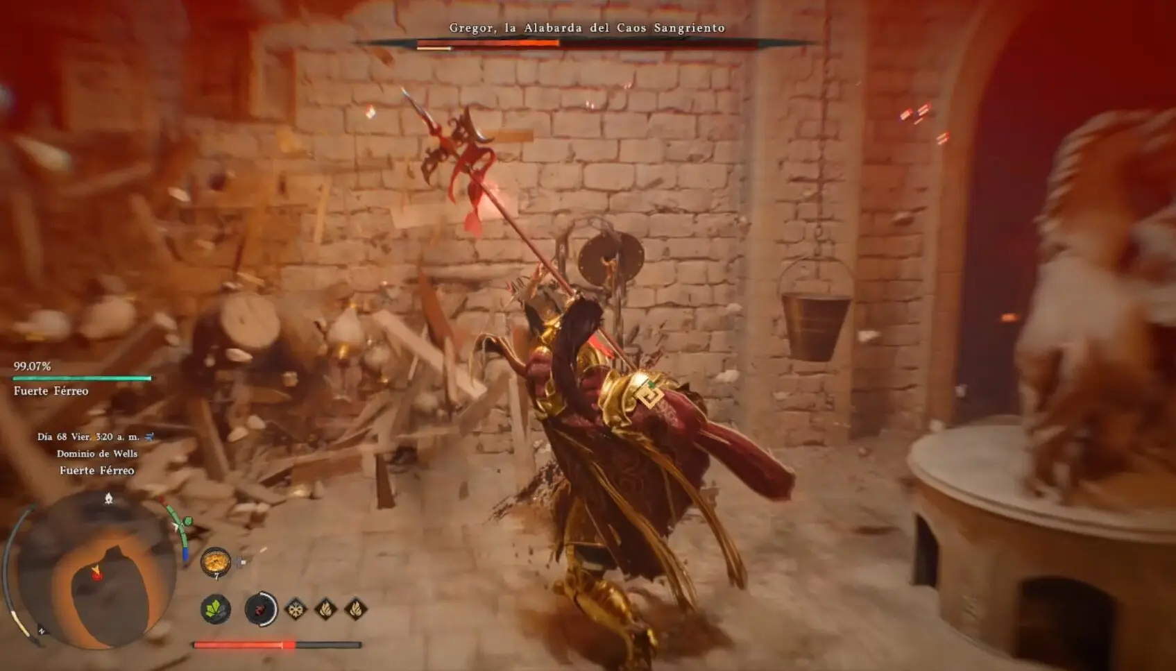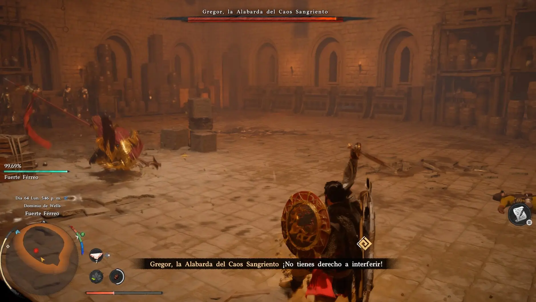 No te dejes engañar por el hecho de que Gregor solo tenga una barra de vida. El capitán del Fuerte Ironclad, en la región de Hernand, es uno de los jefes más difíciles de toda la historia principal de Crimson Desert. Su alabarda tiene un alcance enorme, sus ataques son rápidos para su tamaño, y la propia arena trabaja en su contra con trampas de flechas que no paran de dispararse durante todo el combate. Ven preparado o repite.