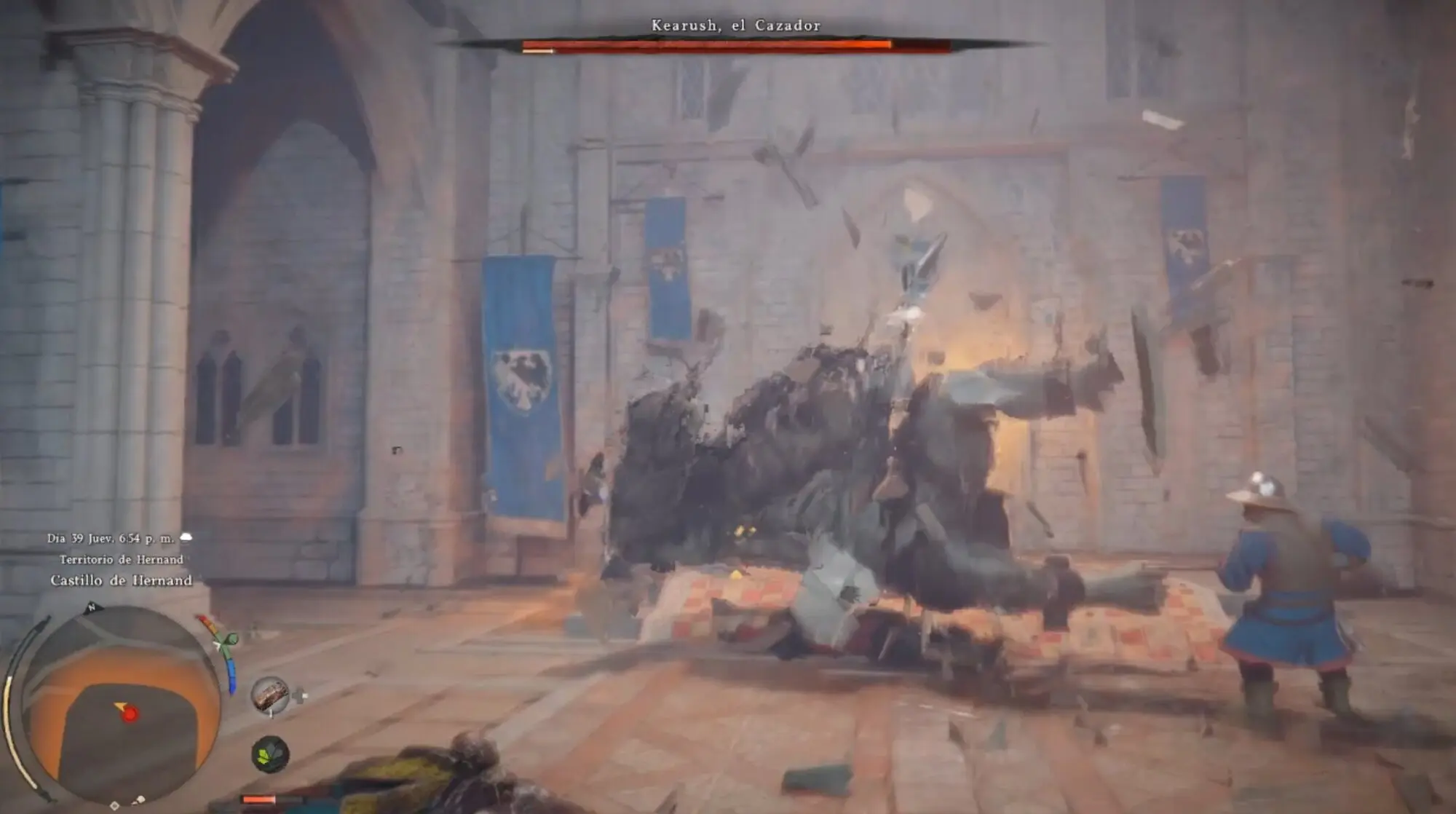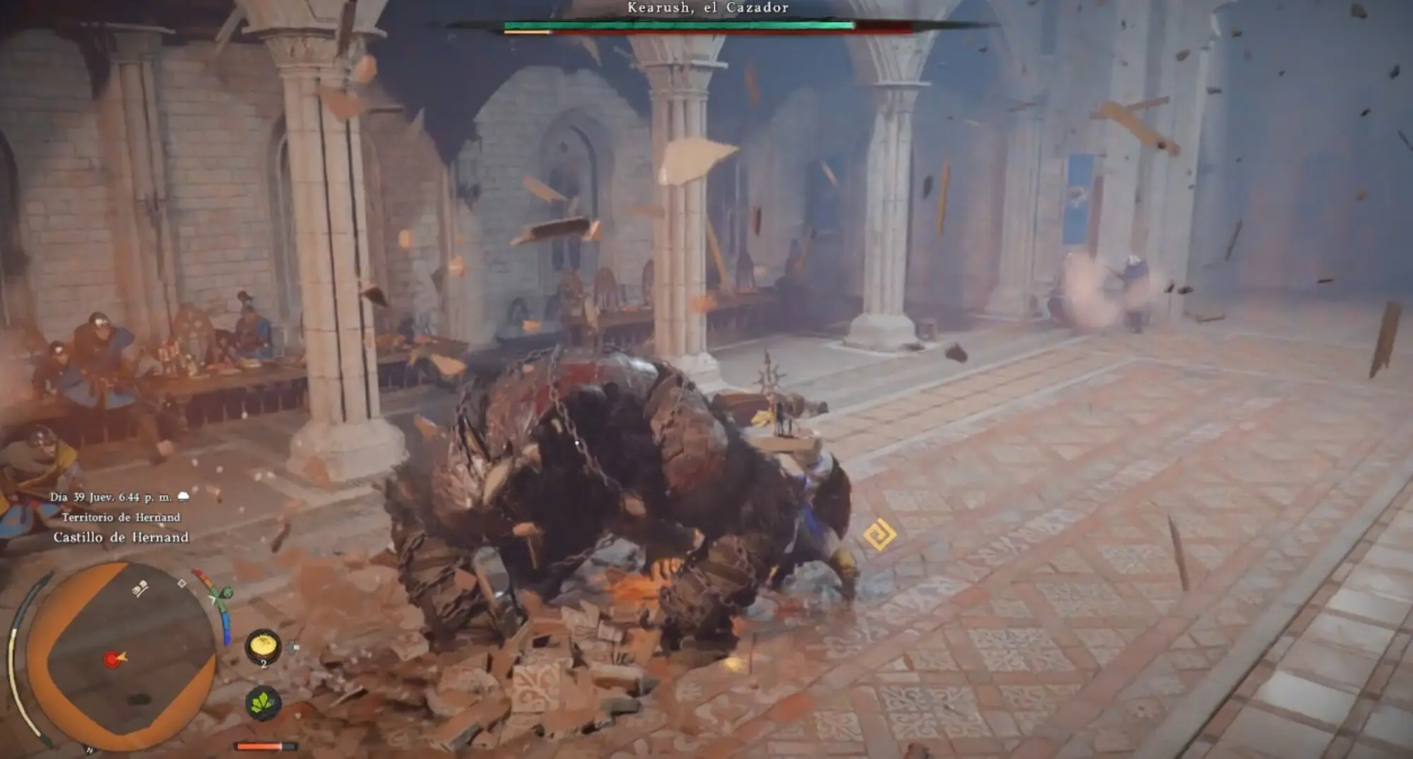 Kearush, el Cazador es el primer jefe verdaderamente brutal de Crimson Desert. Es un monstruo enorme parecido a un gorila que te espera en el Castillo de Hernand durante el capítulo 5 (Huésped no Invitado), en la misión Delegación de Demeniss. Tiene tres barras de vida, golpea durísimo, es rápido y lo peor: el escudo no te sirve de nada. No puedes bloquear ni parar sus ataques. Si llegas aquí sin equipo refinado y sin un montón de comida, lo vas a pasar muy mal. En esta guía te explicamos cómo prepararte y cómo sobrevivir a sus tres fases.
