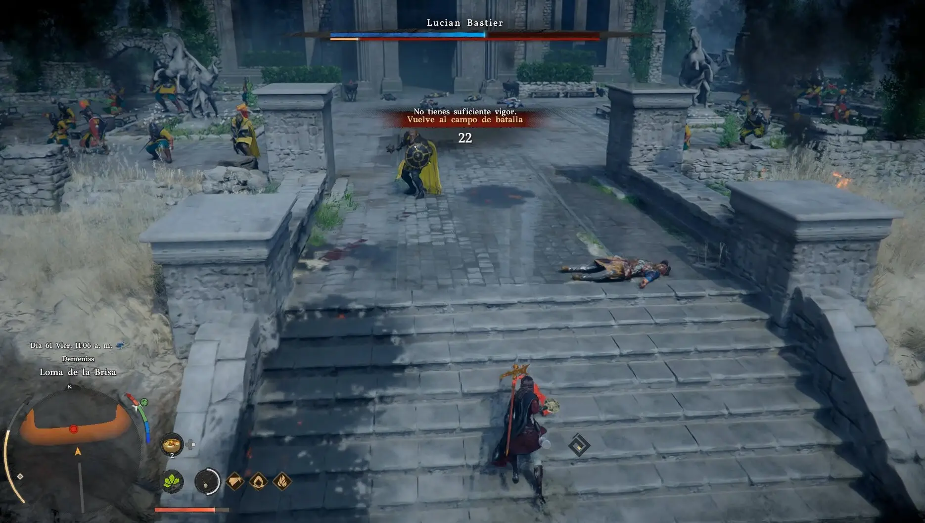 Lucian Bastier es uno de los combates más citados como muro por la comunidad de Crimson Desert, y no precisamente por lo difícil que es el jefe en sí mismo. El problema real es que te ves obligado a enfrentarte a él como Damiane al final del Capítulo 8, en la misión Un Sueño Fugaz, en un momento en el que la mayoría de jugadores lleva casi todo el juego enfocado en Kliff. Si nunca has tocado a Damiane, el salto puede ser brutal. Pero con la preparación correcta y entendiendo cómo funciona ella, el combate es perfectamente manejable.