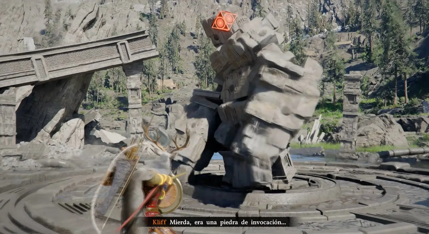 | 3 | Coloca las cuatro piedras reparadas en los pilares del lago. Cuando los cuatro estén correctamente encajados bajarán al agua y se activará una cinemática que invoca a Vordis |