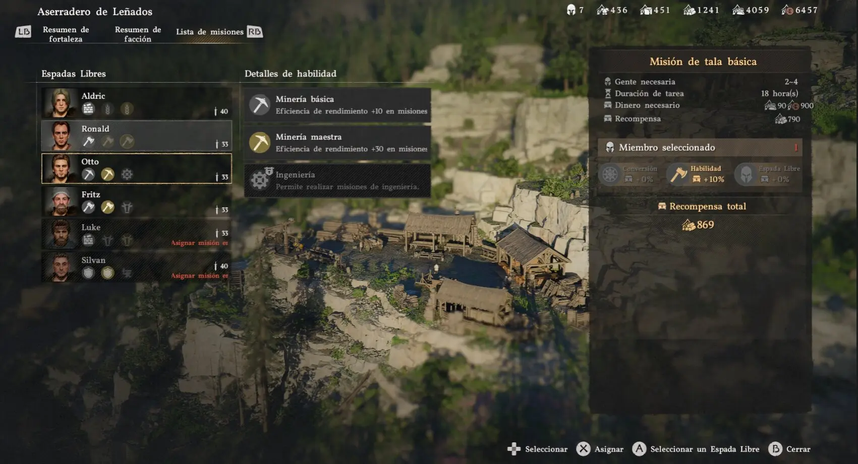 Una de las funciones más útiles del campamento es la gestión de los Melenas Grises. Conforme rescatas compañeros a lo largo de la historia, estos se van uniendo al campamento y puedes enviarlos a misiones de apoyo por todo Pywel.