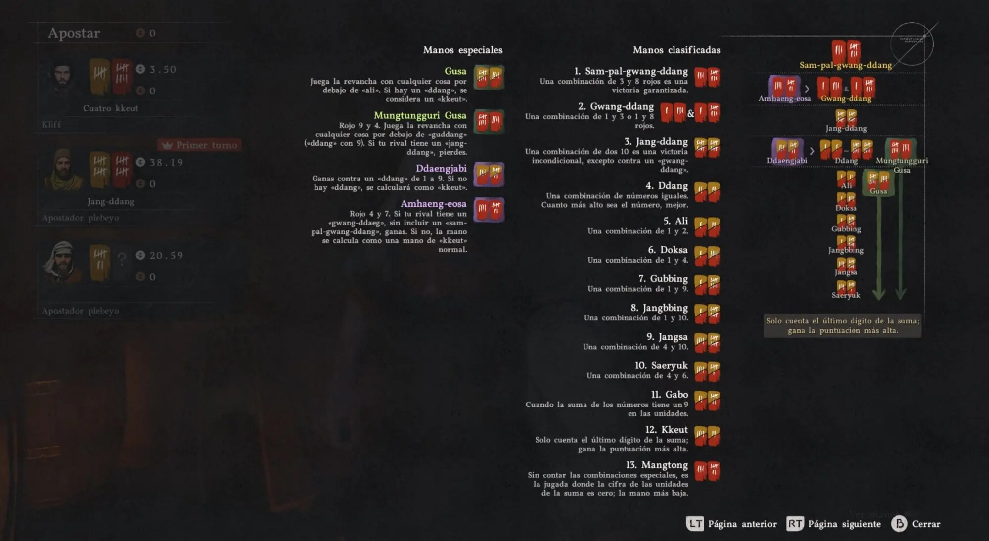 En la aldea de Beighen encontrarás una variante más compleja llamada Cinco Cartas, con una entrada de 150 de plata. Las diferencias principales:
