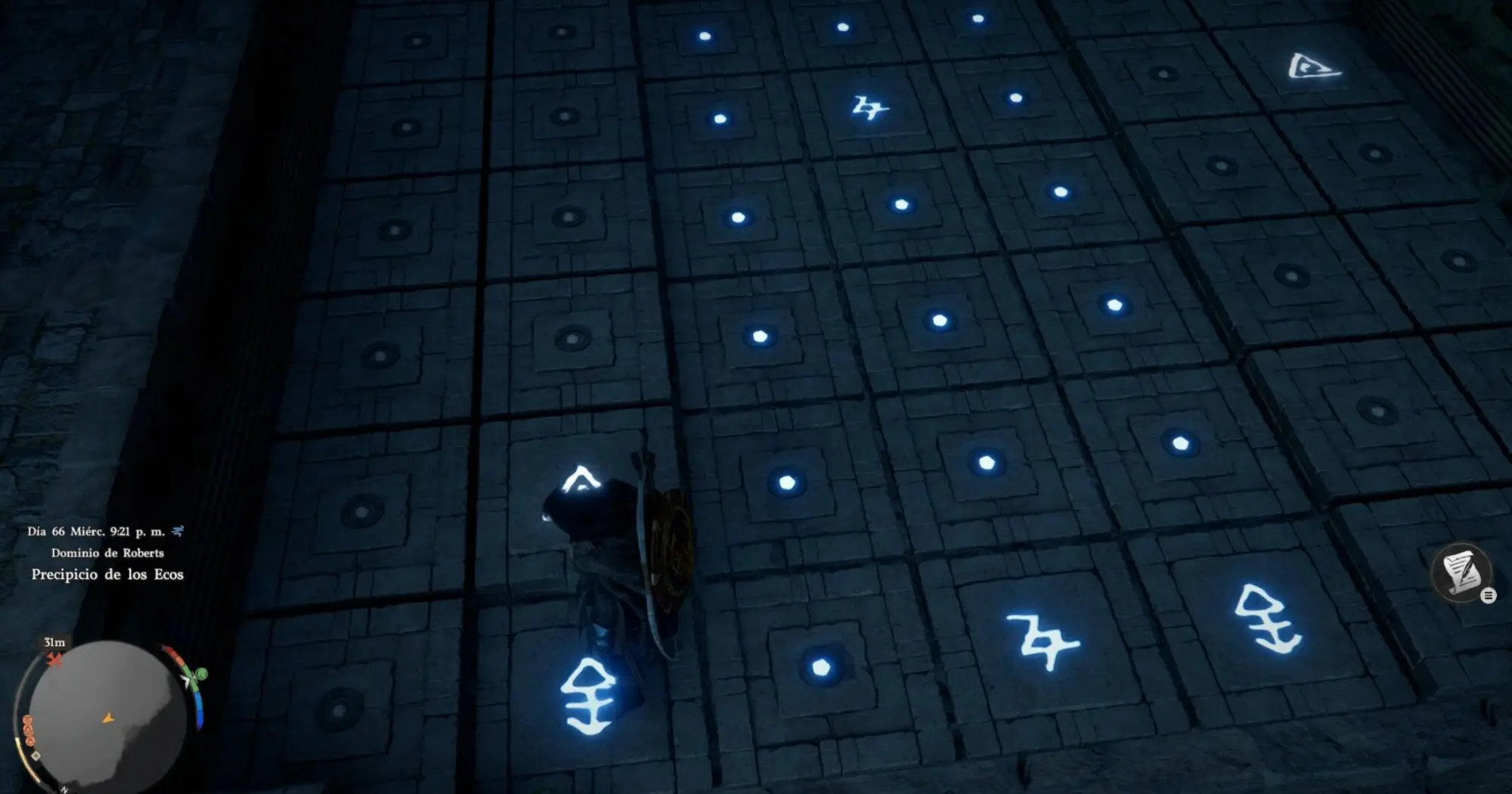 El Precipicio de los Ecos es un puzle de Ruinas Antiguas del tipo Piedras con Símbolos: una rejilla de baldosas en el suelo con iconos que tienes que emparejar caminando de uno al otro sin pisar la misma baldosa gris dos veces y sin saltar. Es una de las Ruinas Antiguas más frustrantes porque el puzle tiene tres rondas de dificultad creciente y cualquier error te reinicia toda la secuencia. En esta guía te explicamos las reglas, la ubicación y la solución de las tres rondas.