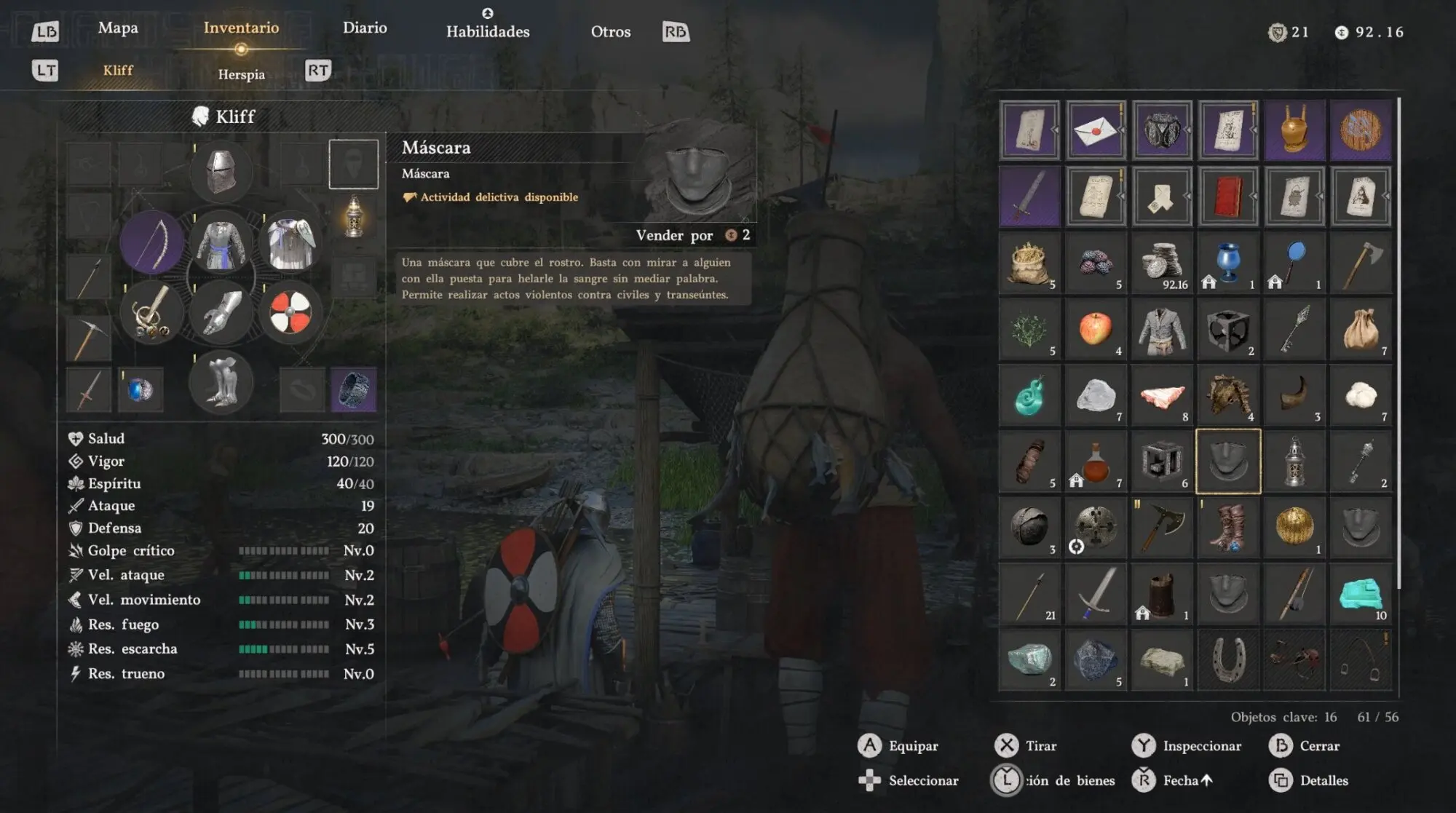 | 2. Equípate la máscara | Ponte la máscara desde el inventario. Solo con ella puesta se desbloquean las acciones criminales |