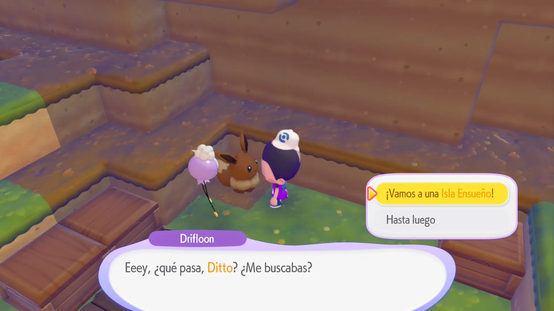 Una vez tengas el peluche, deberás enseñárselo al Drifloon (también podrás invocarlo directamente donde estés en caso de que interactúes con el peluche como tal) y este te llevará a una isla de ensueño. Eso sí, ten en cuenta que el Drifloon solo podrá llevarte a una misma isla a lo largo del día. Una vez llegues allí, busca unas semillas que aparecerán volando con el viento y recógelas, dado que será la moneda de cambio que tendrás que usar para negociar con Hoppip.