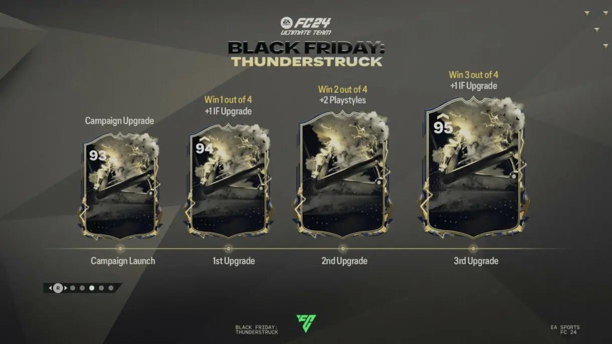 Entre las muchas filtraciones que han surgido sobre los Thunderstruck, algunas apuntaban a que serían cartas dinámicas. Pues bien, ya ha sido prácticamente confirmado mediante varias pantallas de carga de EA Sports FC 24 Ultimate Team. Y parece que contaremos con dos tipos de sistemas de upgrades, uno para los Iconos y otro para los ítems negros (que deberían ser para los jugadores en activo).