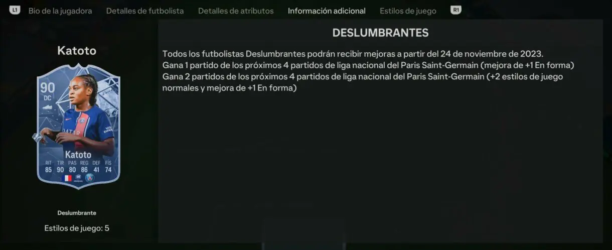 Información adicional Katoto Deslumbrantes (explicando el sistema de mejora) EA Sports FC 24 Ultimate Team