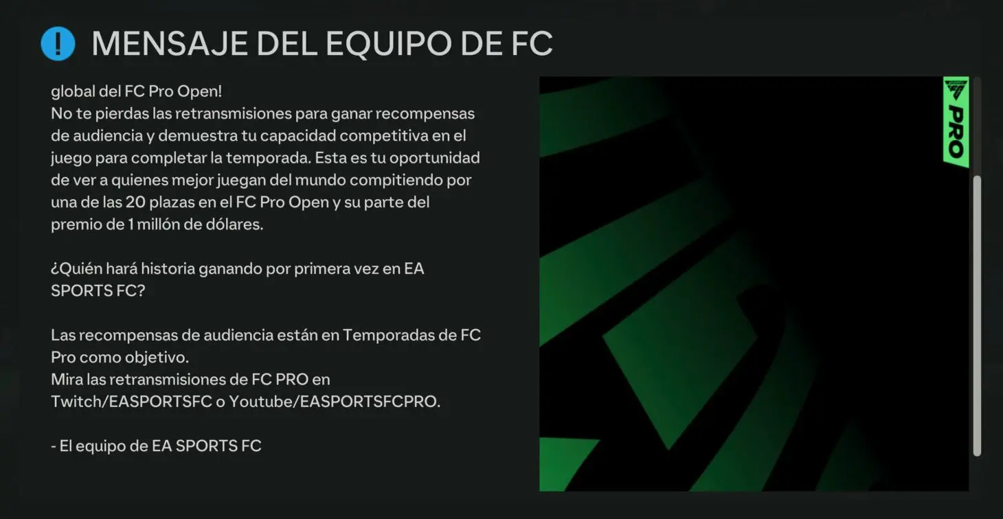 Si has jugado a otras ediciones, quizá recordarás que podíamos conseguir tokens FGS canjeables por sobres al ver ciertos eventos del competitivo. Pues parece que la dinámica ahora será similar. Siguiendo las retransmisiones de FC PRO mediante Twitch o Youtube (además de jugar y ganar algunos partidos en Ultimate Team), tendríamos la opción de sumar packs intransferibles a nuestro club.