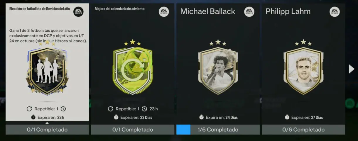 Ya vimos un caso similar en EA Sports FC 24 durante el Black Friday. Por jugar dos partidos cada día usando al menos una carta Radiactividad como titular, completaríamos un grupo de objetivos que será repetible cada día hasta el viernes 8 de diciembre. Y si completamos ese grupo un total de seis veces, recibiremos bastantes sobres y experiencia para el actual pase de temporada.