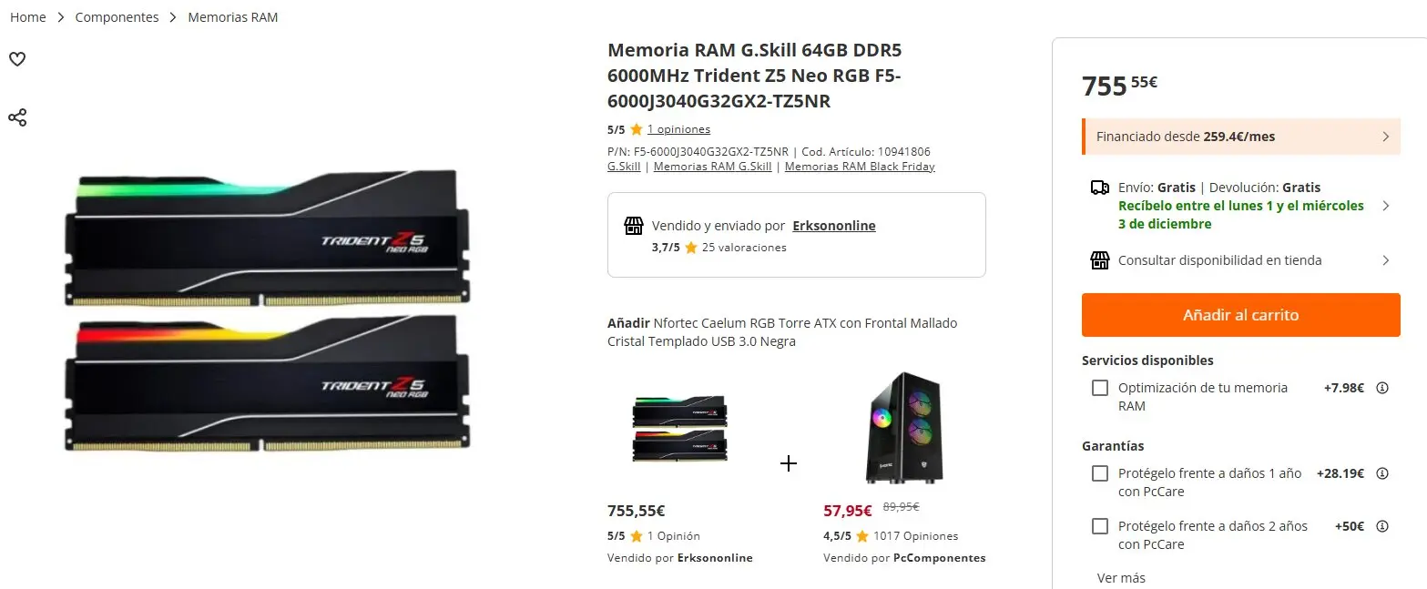 Los precios de las tarjetas RAM varían en función de la tienda. Por ejemplo, en PcComponente está la opción de adquirir las Trident Z5 Neo (64 GB DDR5) por 755 euros; mientras que en Amazon está el caso de las Corsair Dominator Platinum (cuatro tarjetas de 16 GB) por 514 euros. Todavía hay algunos productos que no han disparado su valor en el mercado, pero lo cierto es que la mayoría empieza a dejar atrás a las consolas.