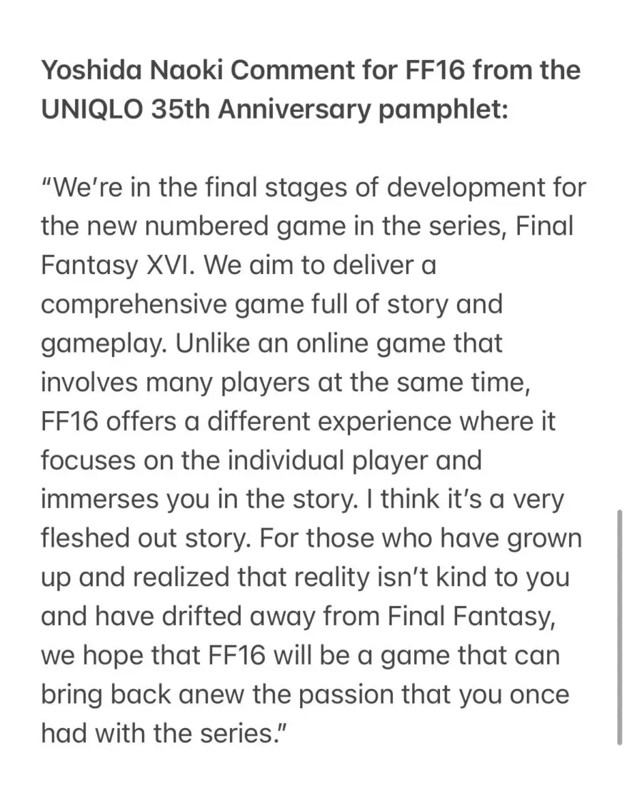 ¡Pues por fin buenas noticias sobre Final Fantasy XVI! Bueno, yo solo espero que esto signifique que llegue cuanto antes el juego, aunque yo creo que eso sí que tardará. Al menos, sí confío que en pocos meses se deje ver un buen gameplay del título.