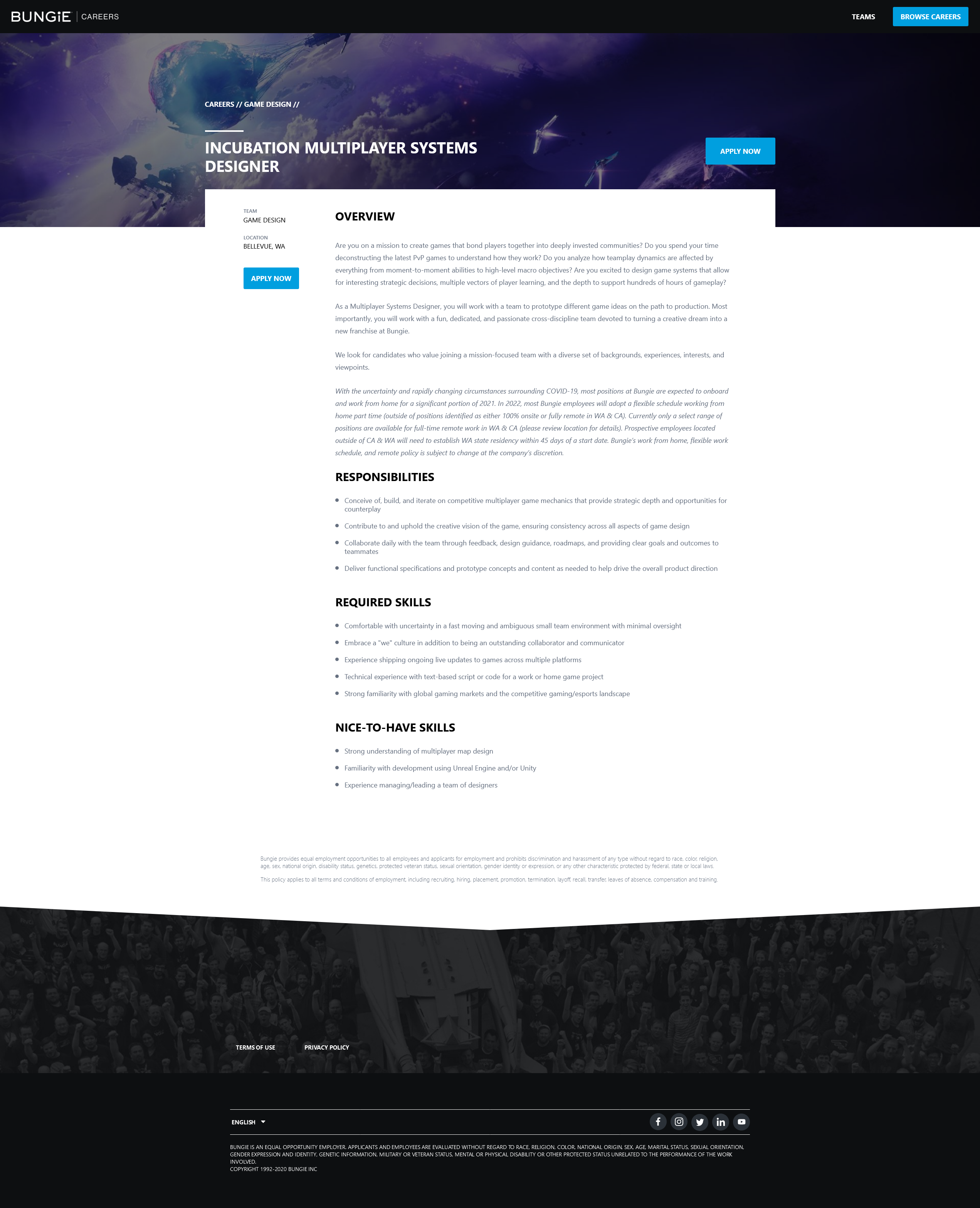 Ha sido una reciente oferta de empleo (compartida por el portal AllGamesDelta) la que ha desvelado que Bungie está buscando gente con experiencia e interés en el campo de los multijugadores competitivos. Si bien no se dan demasiados detalles, el puesto que Bungie busca cubrir es el de diseñador de sistemas multijugador para "convertir un sueño creativo en una nueva franquicia en Bungie".