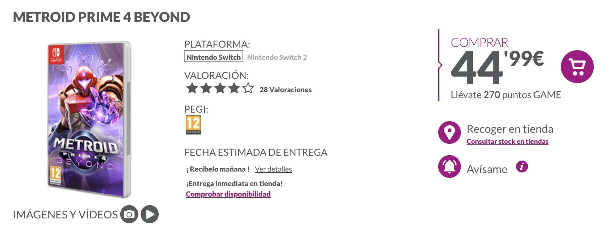 Metroid Prime 4: Beyond para Nintendo Switch en GAME cuesta actualmente 44,99 euros, pero eso es solo hoy. Significa una rebaja de 15 euros, ya que el título original cuesta 59,99 euros en esta versión. Si te interesa, puedes comprarlo a través de este enlace. Pero recuerda que esta es la versión de la primera Nintendo Switch. Puedes jugarla en Nintendo Switch 2 sin problema, pero no contaría con las mejoras de esta consola.