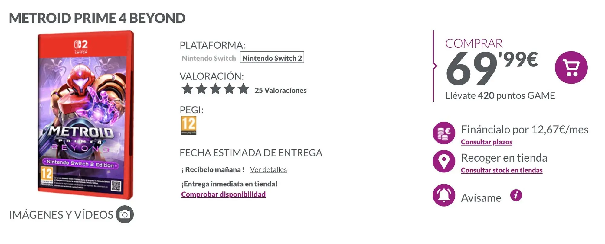 Como podéis ver, la versión para Nintendo Switch 2 de Metroid Prime 4: Beyond no está de oferta. En su defecto, cuesta 69,99 euros. Sin embargo, hay un truco para hacerte con él más barato: