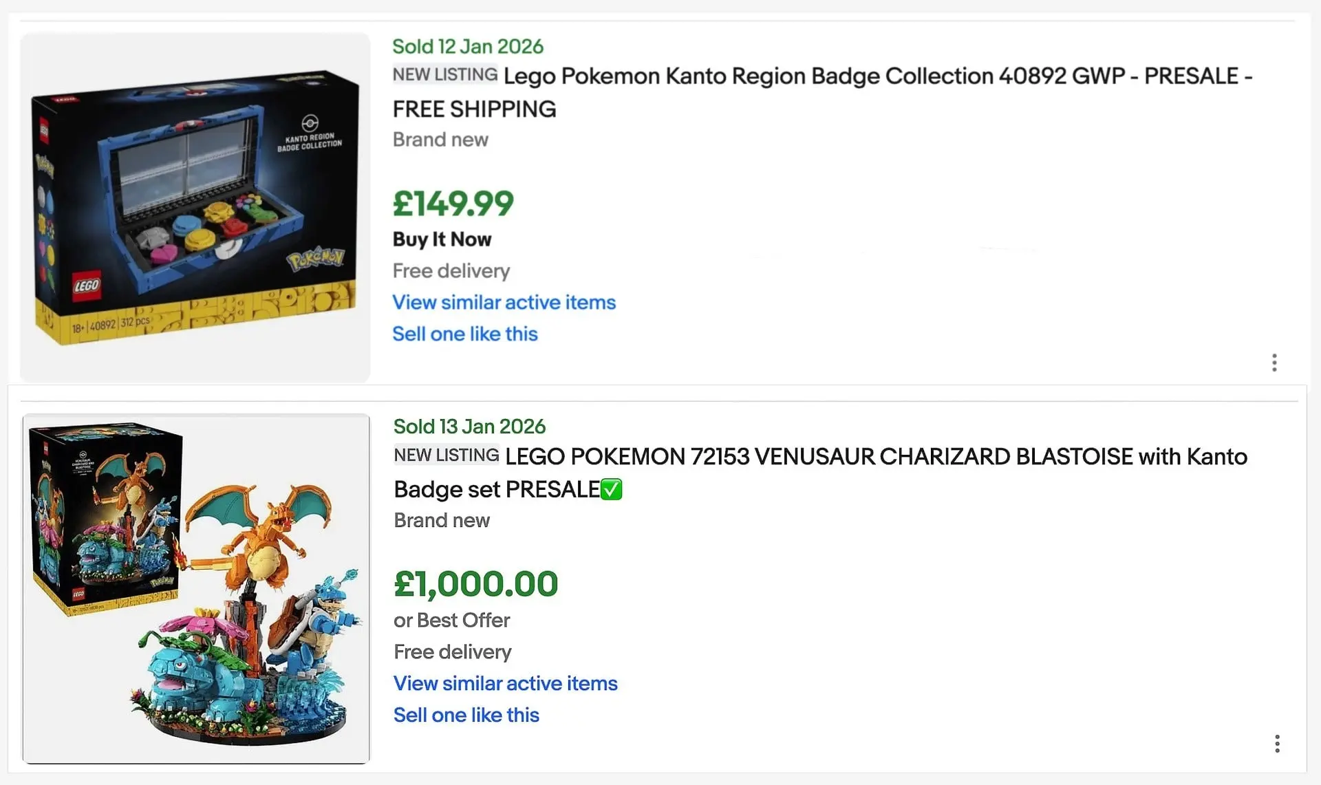 El principal problema de la especulación con este tipo de ítems es que se acaban convirtiendo en productos que no todo el mundo puede conseguir a causa de la escasez de stock (cosa que todavía está por ver con estos sets de LEGO Pokémon), pero esto también es algo que la propia LEGO propicia al hacer que los precios iniciales de los sets sean tan altos. De hecho, ya hay algunos puestos a la venta en eBay que muestran cómo esta tendencia es bastante real (vía NintendoLife):