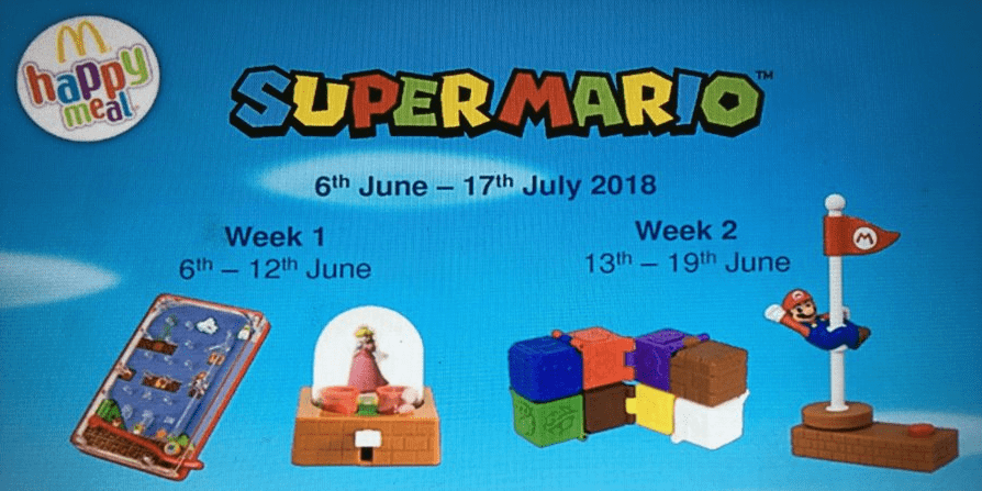 Nintendo y McDonald's no son desconocidos en lo que a negocios compartidos respecta, algo que pudimos comprobar hace no demasiado en España. Ambas compañías se unen una vez más en lo que será una nueva promoción de Super Mario con el conocido menú Happy Meal, aunque esta vez será de forma exclusiva en el Reino Unido (por lo menos a día de hoy). A continuación podéis echar un vistazo a las figuras que comenzarán a llegar a partir del mes de junio, cortesía de los compañeros de NintendoLife: