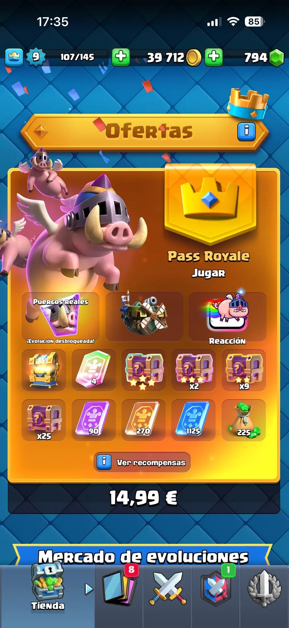 Y algo que me había sorprendido, era ver que Super Cell había sacado un pase de batalla típico que solemos ver en un montón de videojuegos, pero con un precio realmente elevado bajo mi punto de vista. Si bien tenemos un pase gratis donde podemos conseguir un montón de cosas, como es normal, el de pago trae consigo un montón más de contenido interesante, aunque su precio realmente no lo es, pues nos piden 14,99 € para este pase de batalla.